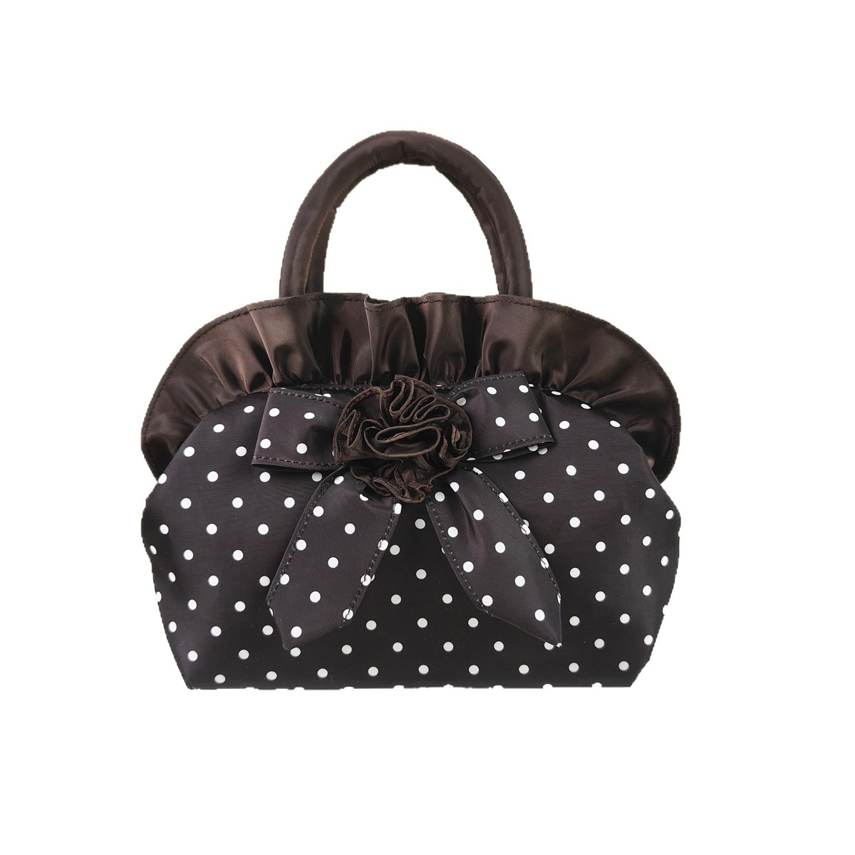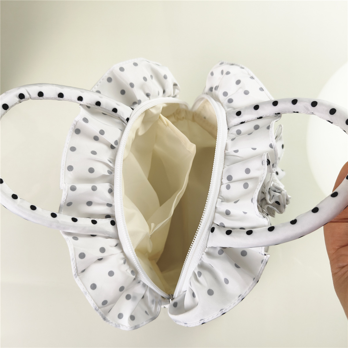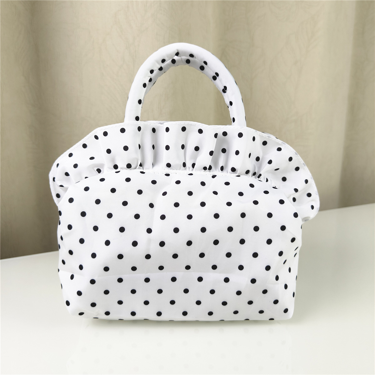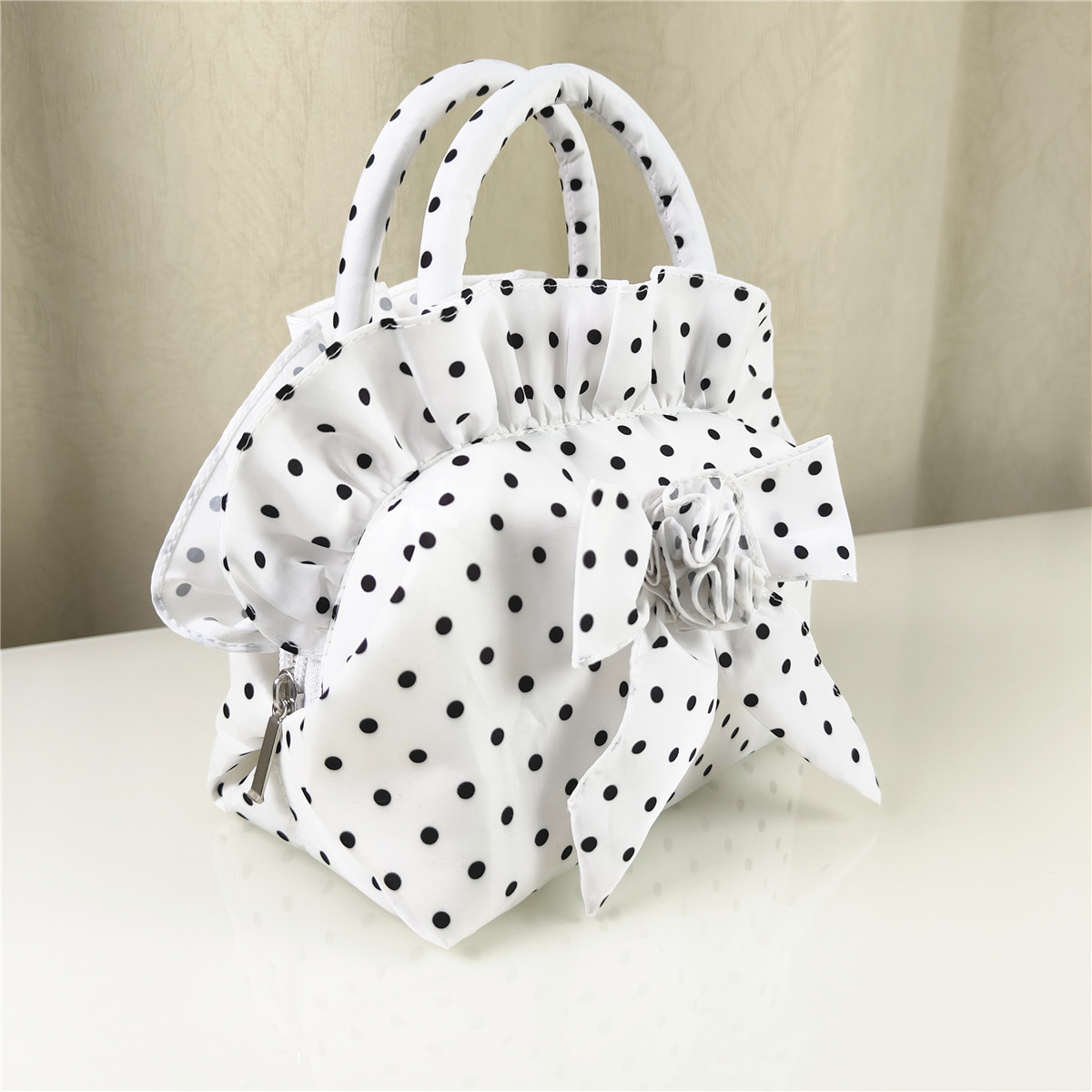 2026년 신상 한국 스타일 귀여운 흑백 도트무늬 패브릭 리본 작은 가방 캐주얼하고 다용도로 활용 가능한 휴대폰 동전 지갑