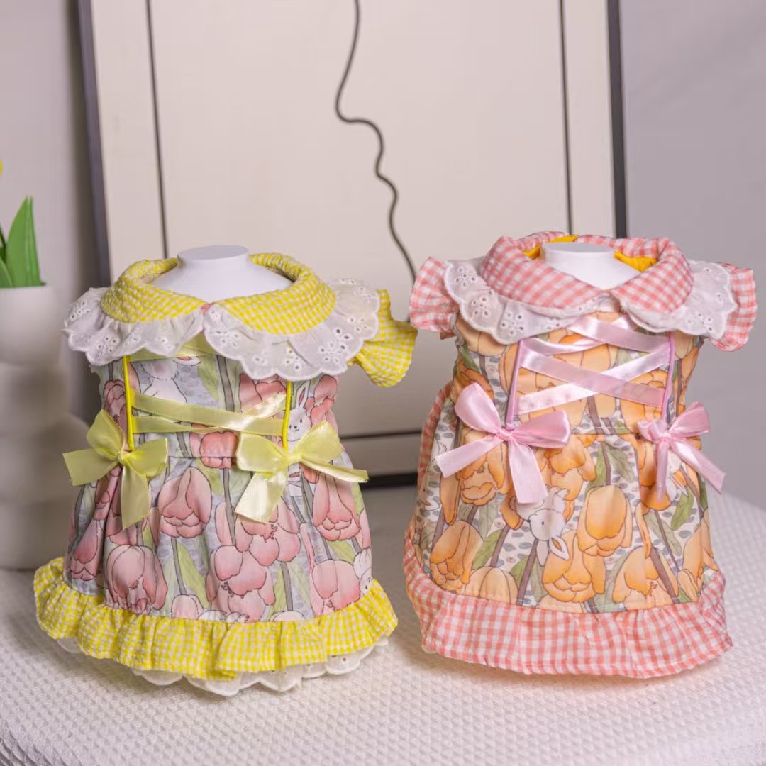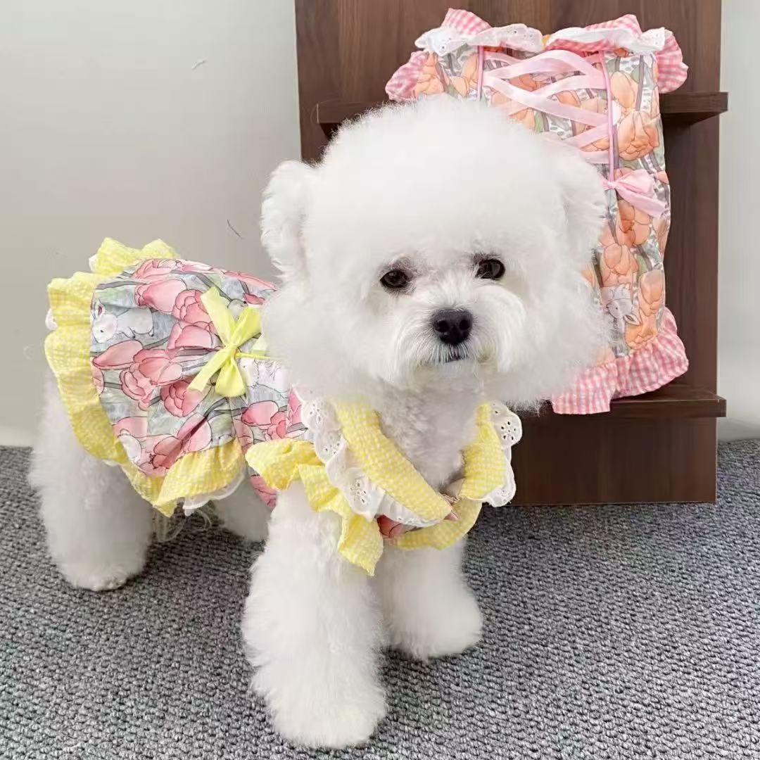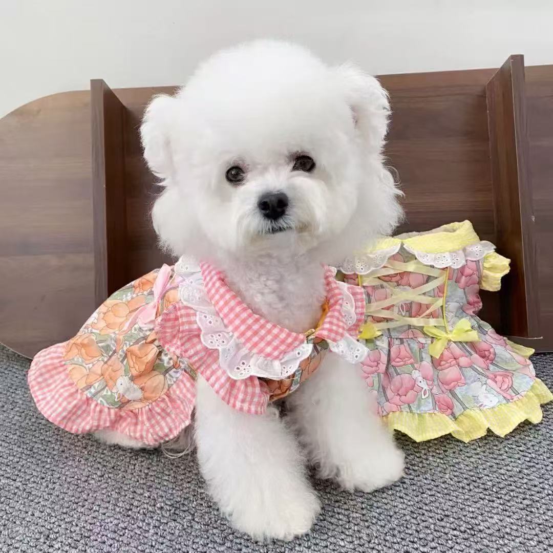 애완 동물 옷깃 공주 드레스 개 봄과 여름 새로운 꽃 드레스 작은 신선한 고양이 요크셔 비숑 의류