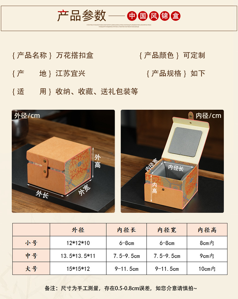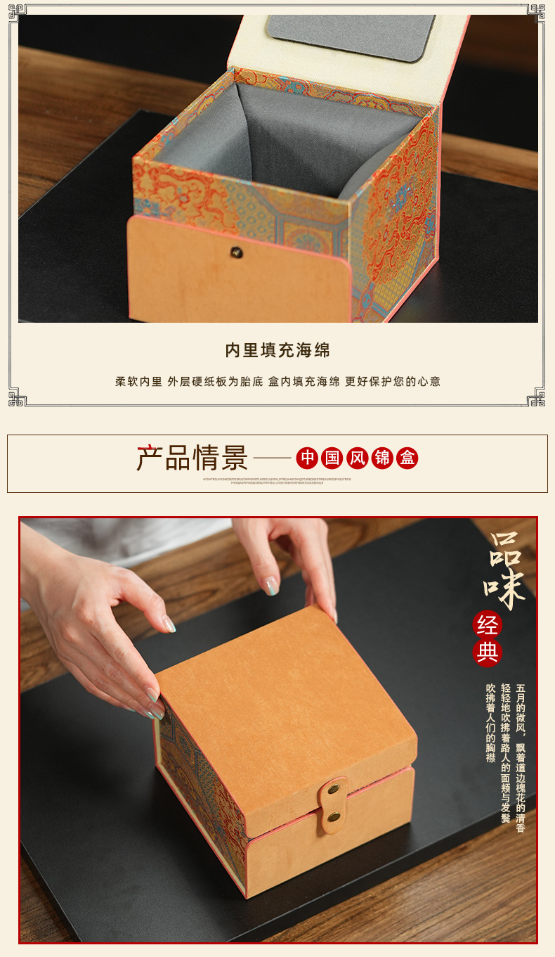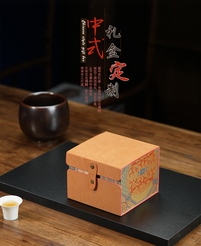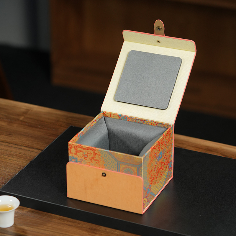 만화경 오일 가죽 천 브로케이드 상자 보라색 점토 냄비 빌딩 브로케이드 상자 차 컵 주전자 차 세트 선물 상자 향로 포장 상자