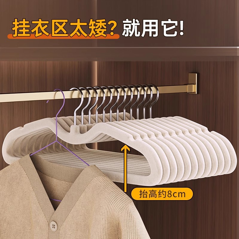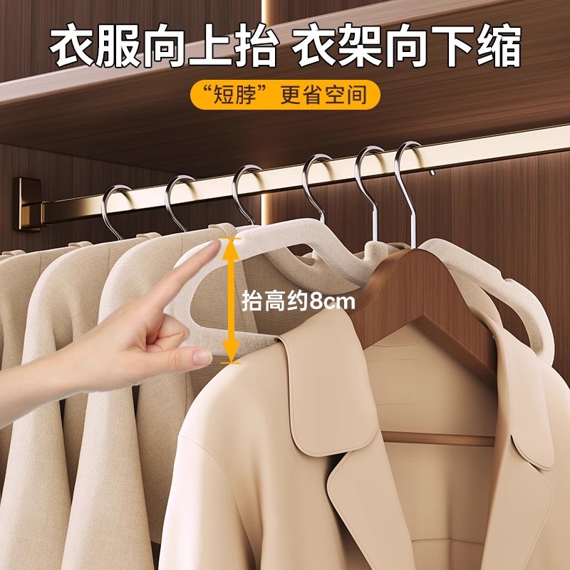 옷걸이, 플록 처리된 짧은 목 옷걸이, 가정용 일상용 미끄럼 방지, 흔적 없는 짧은 목 옷걸이, 가정용 옷걸이, 두꺼운