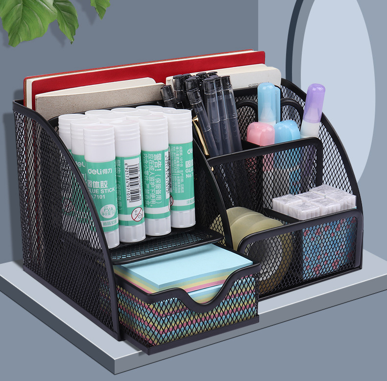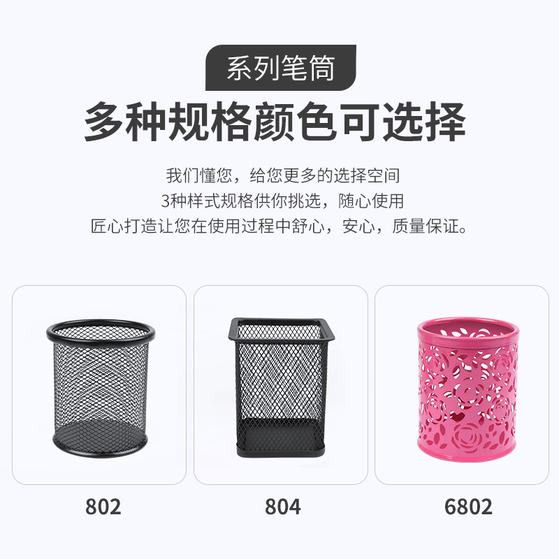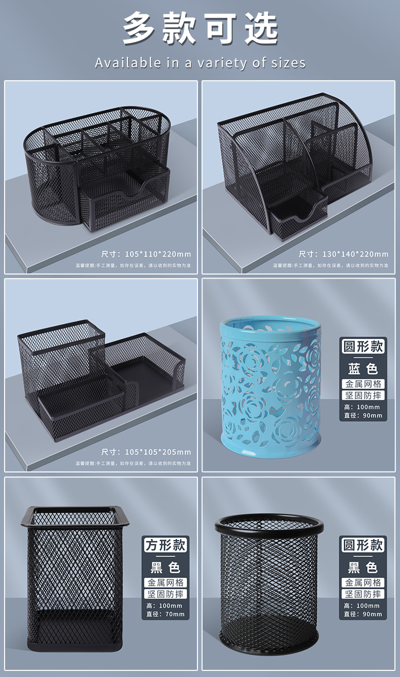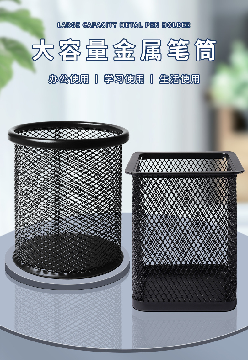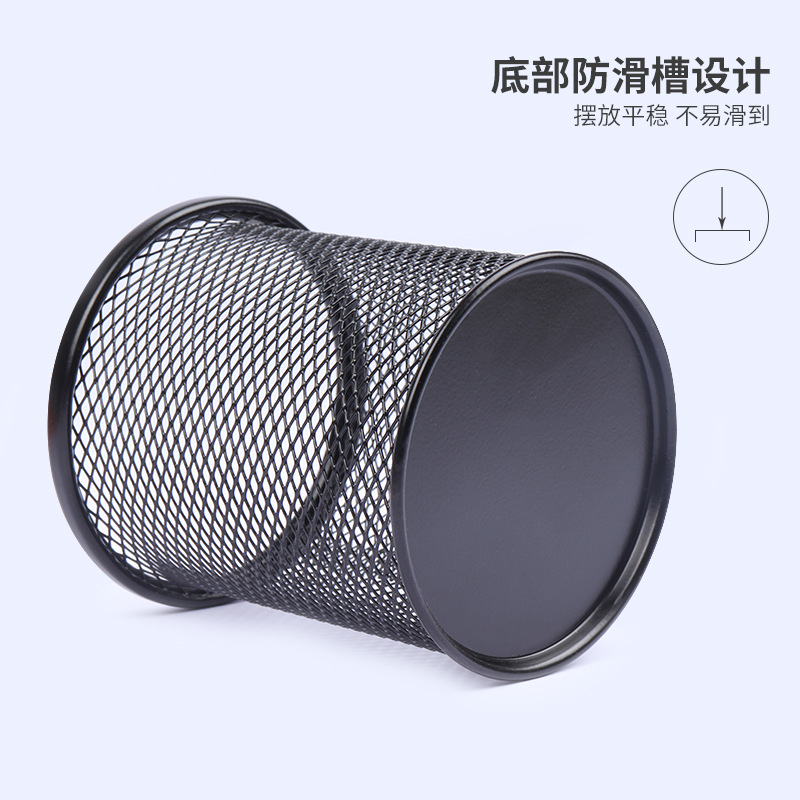 Chuangsheng 사무용품 간단한 원형 펜 홀더 학교 시즌 검은 메쉬 금속 사각형 두꺼운 펜 홀더