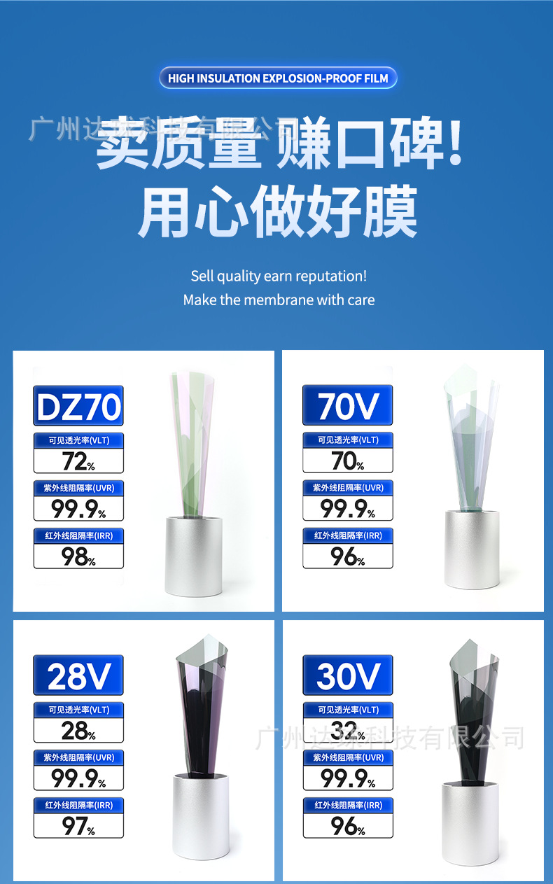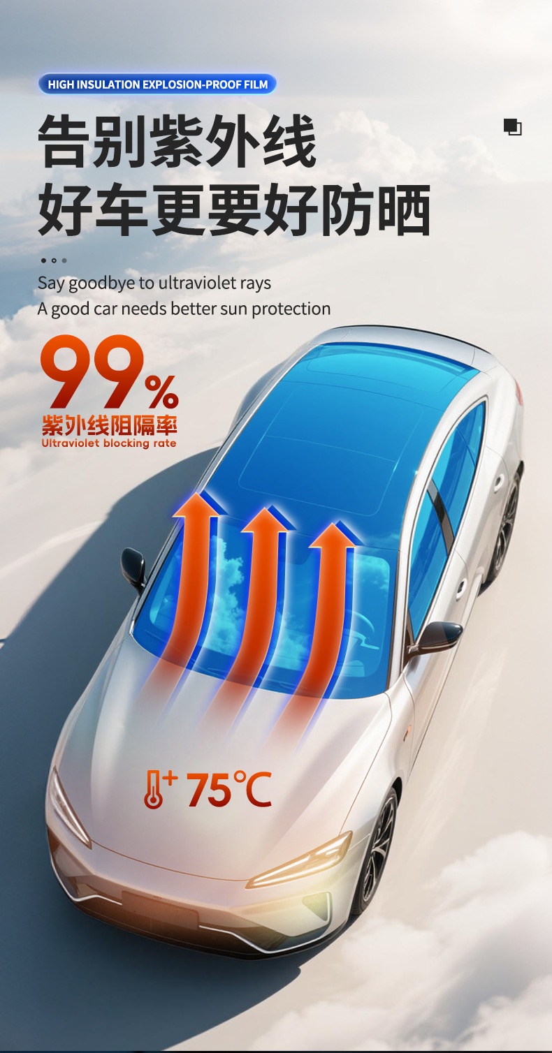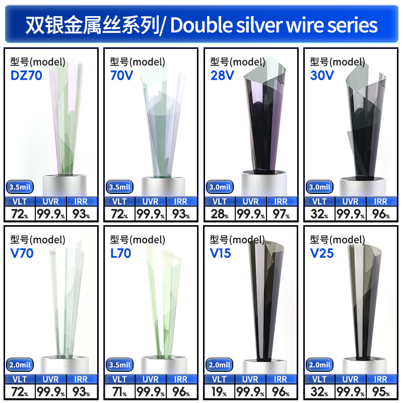 자동차 태양 단열 필름 다이아몬드 더블 실버 와이어 태양 필름 태양 보호 및 방폭형 전체 자동차 필름 자동차 창 유리 필름