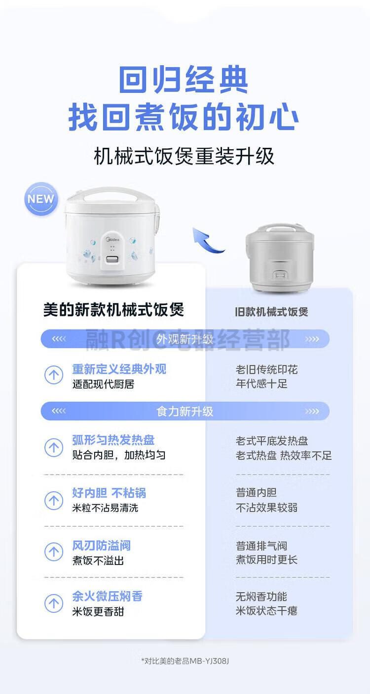 미디어 다기능 가정용 기숙사용 구형 전자동 기계식 전기밥솥 4리터 MB-AJ409