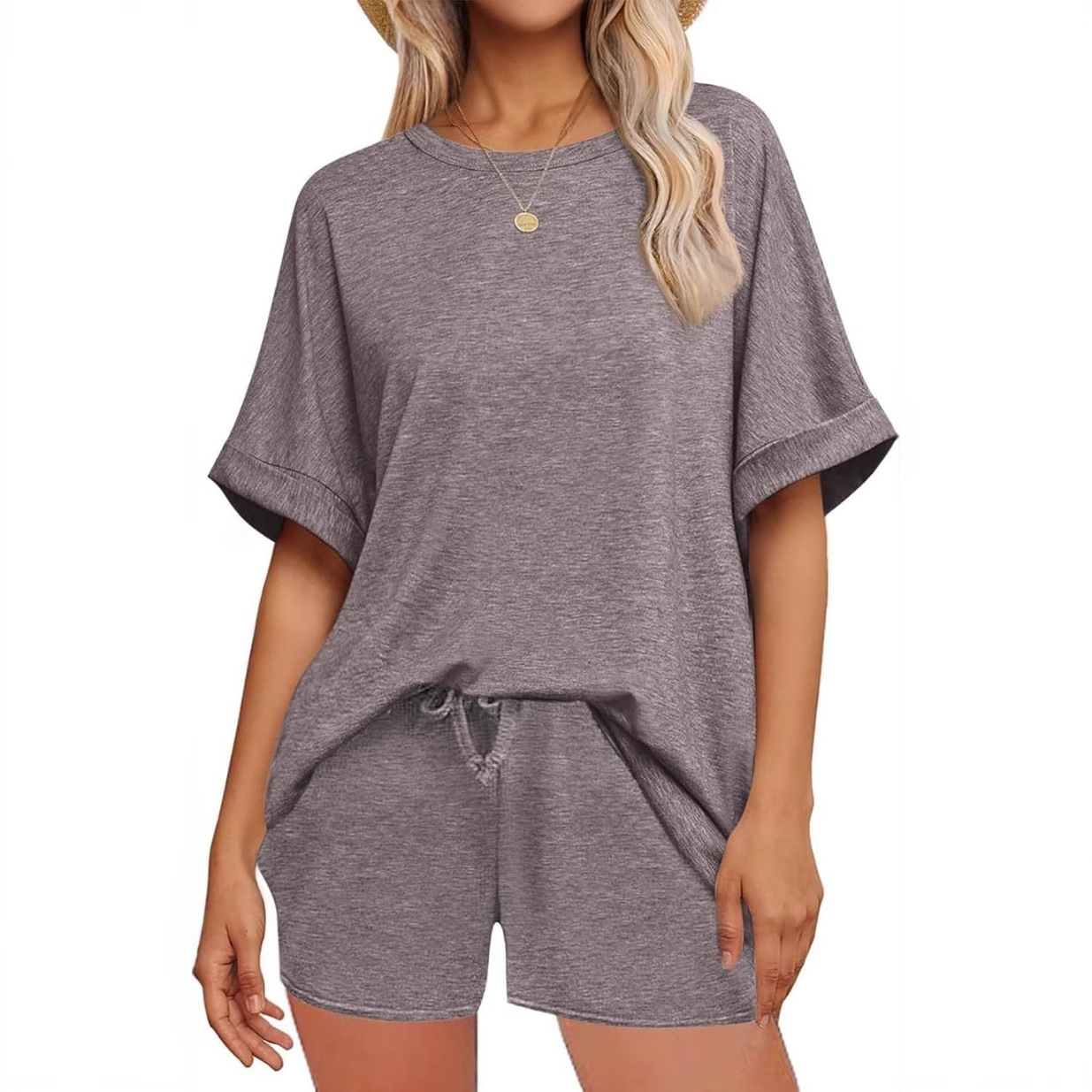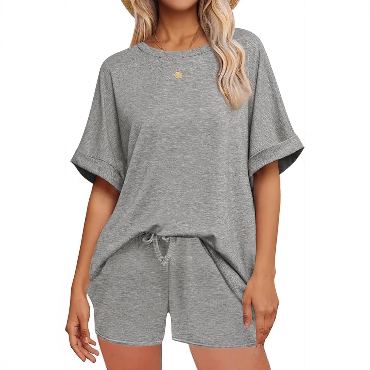 2025 아마존 독립 역 여름 유럽과 미국의 인기 박쥐 반팔 티셔츠 졸라 매는 끈 반바지 캐주얼 스포츠 슈트