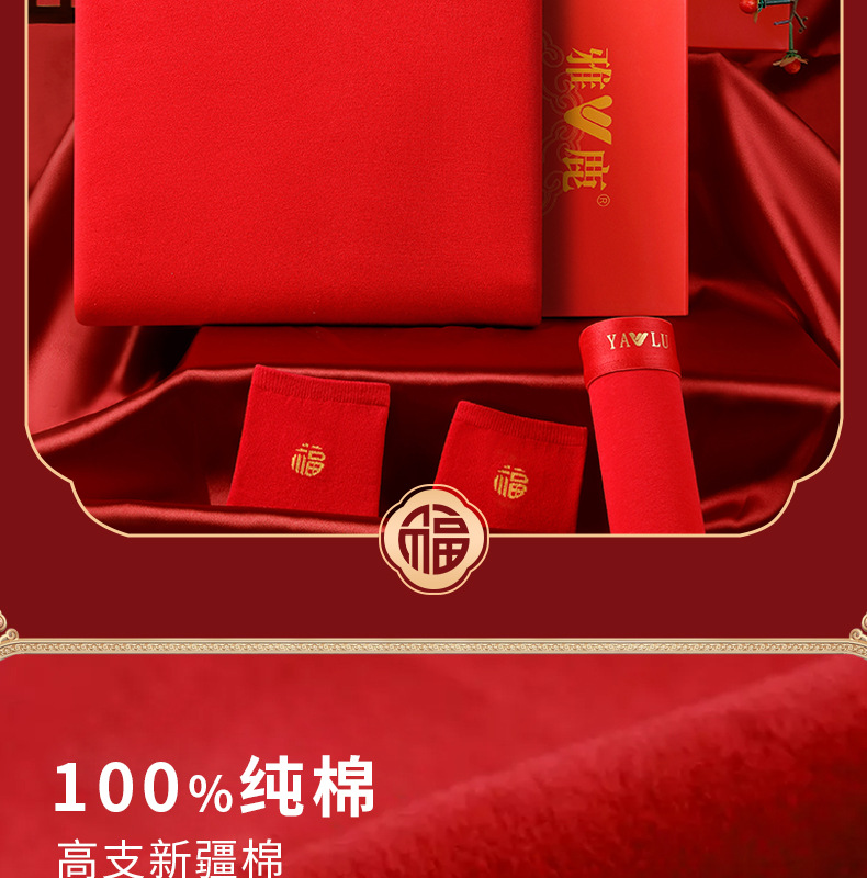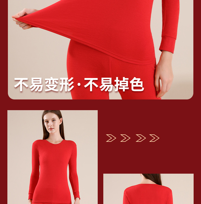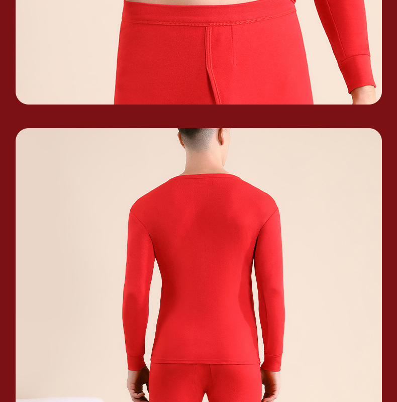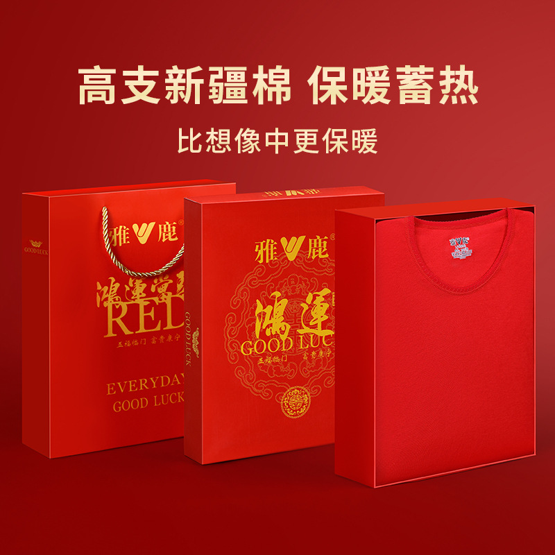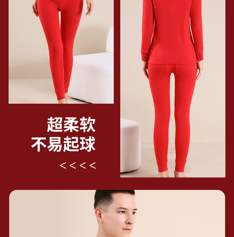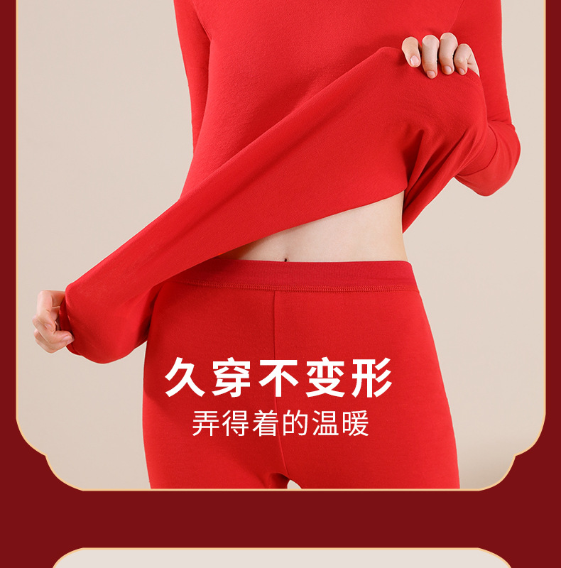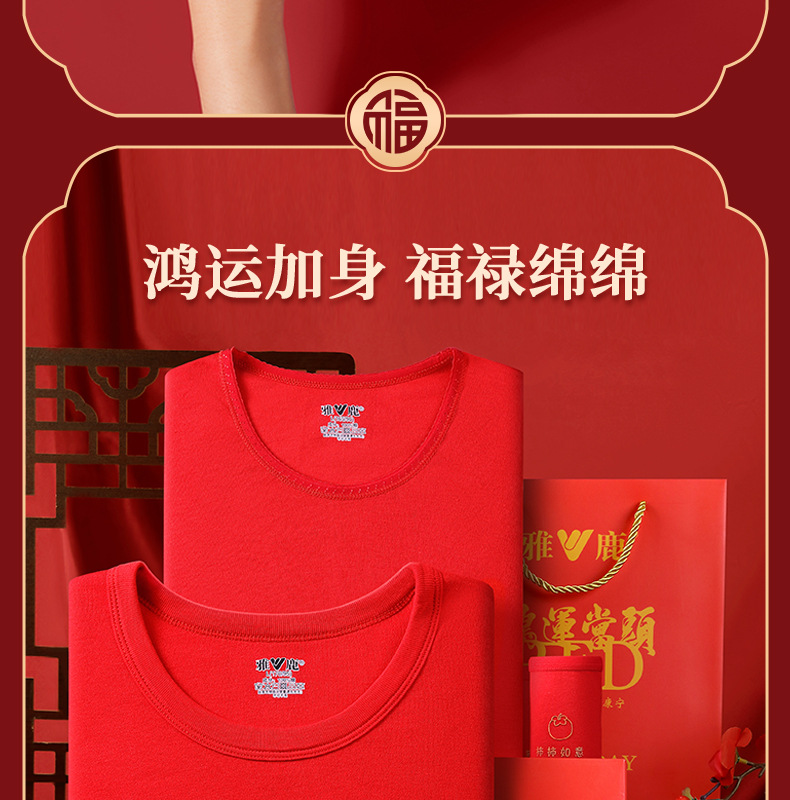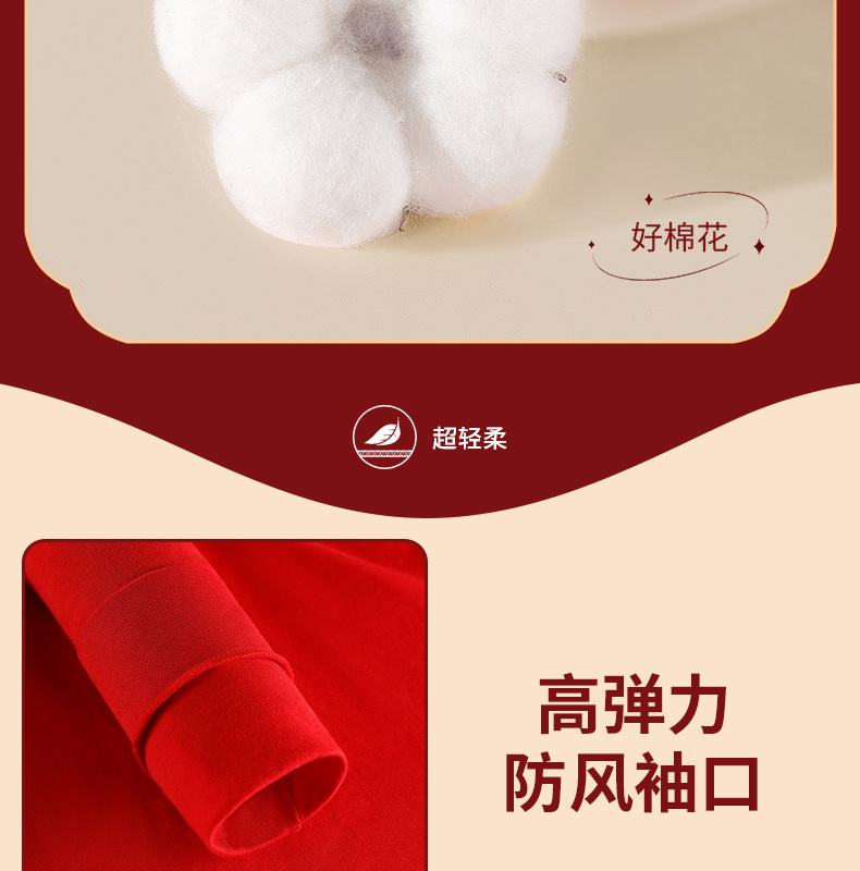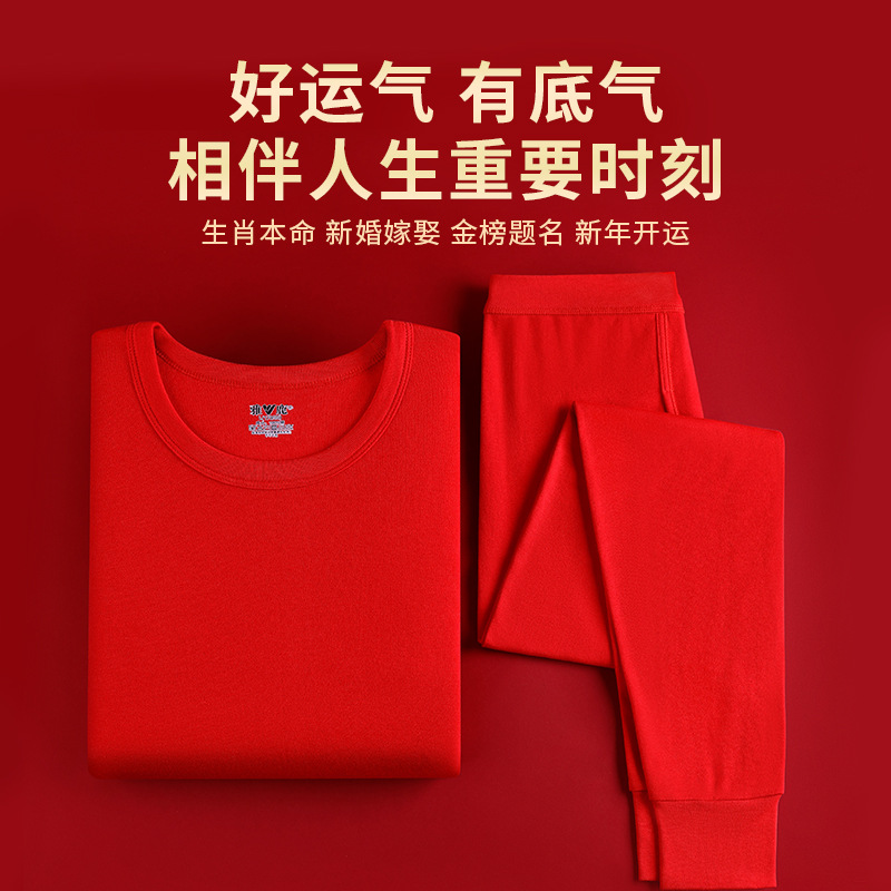 야루 100% 순면 행운의 생년월 가을옷 상하의 세트 큰 빨간색 보온 세트 말의 해 선물 세트 결혼용
