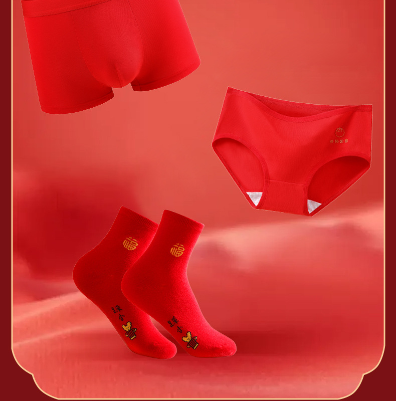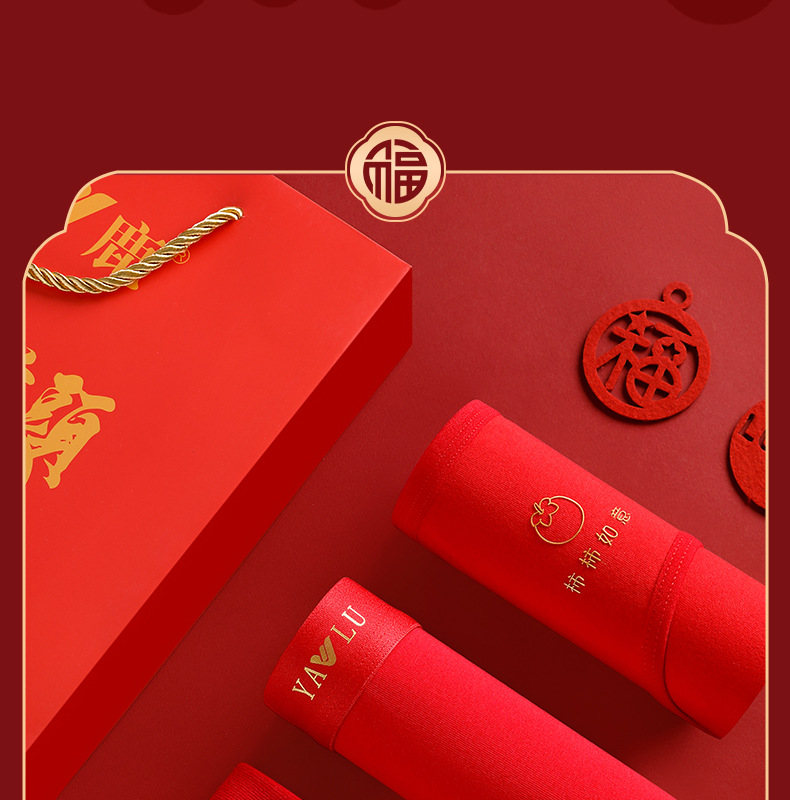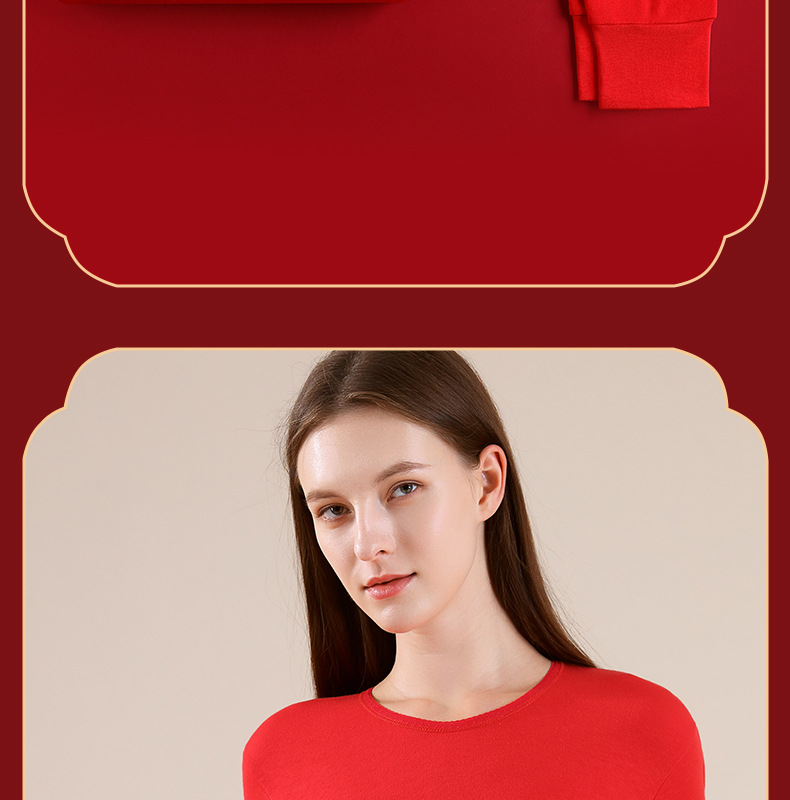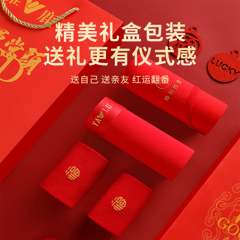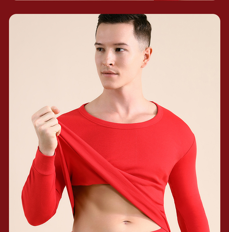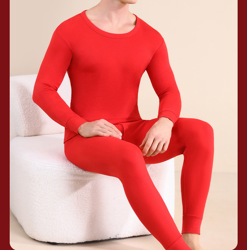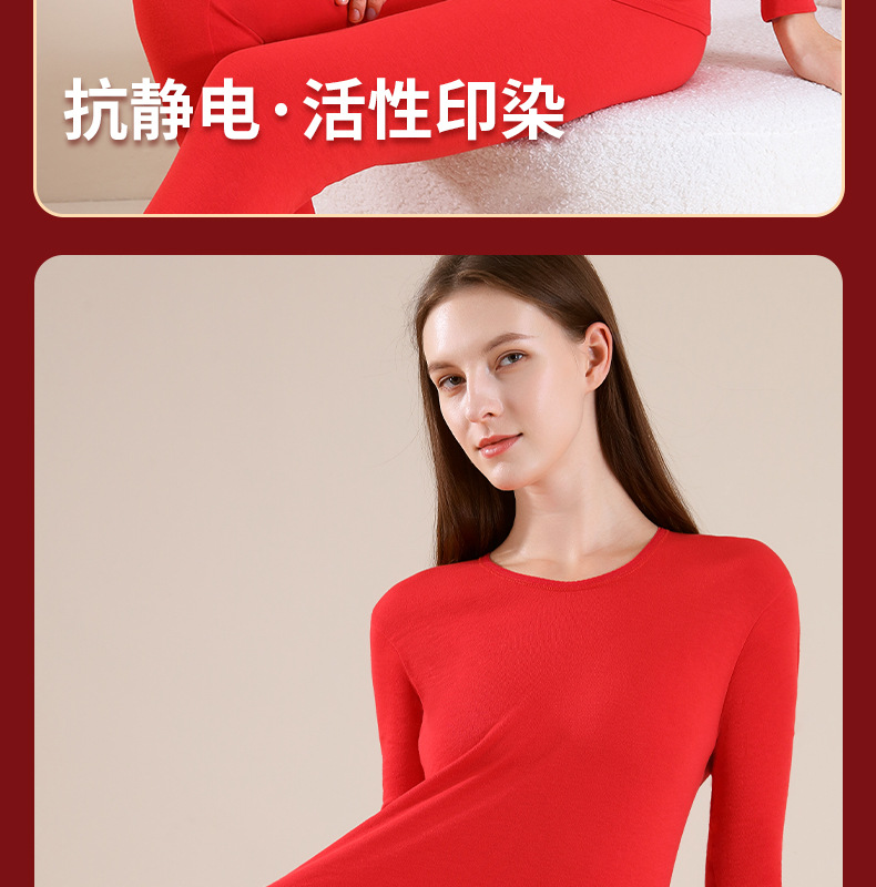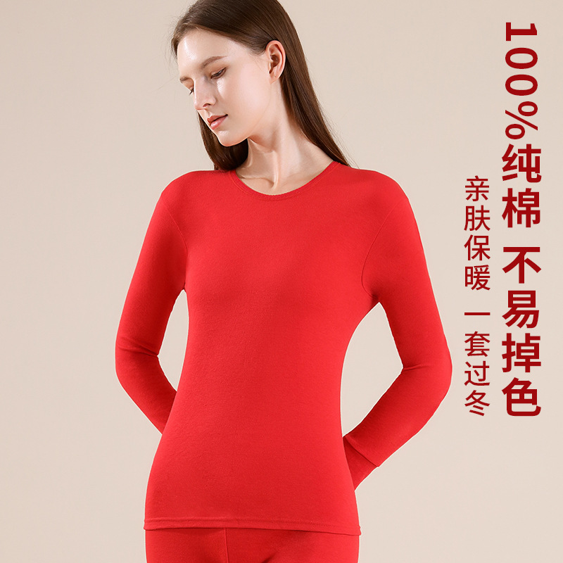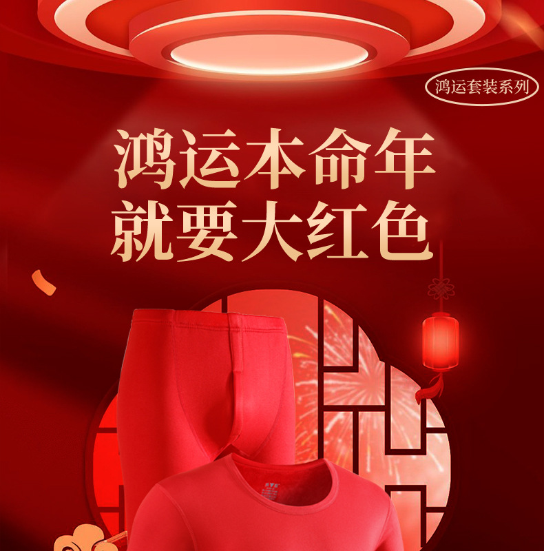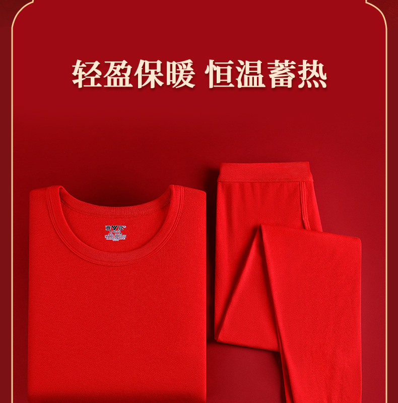 야루 100% 순면 행운의 생년월 가을옷 상하의 세트 큰 빨간색 보온 세트 말의 해 선물 세트 결혼용