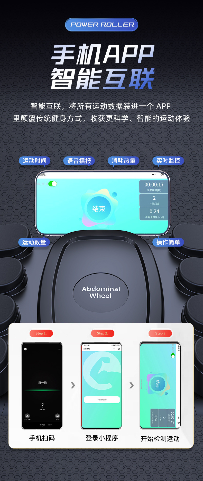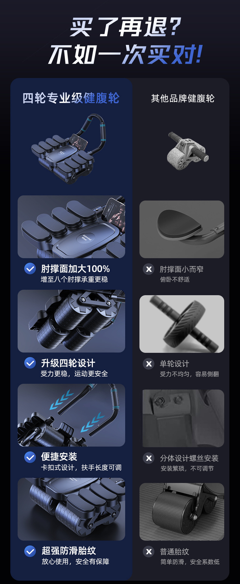 4륜 복근 휠, 자동 리바운드 복근 운동 도구, 남녀 공용 가정용 복근 운동기구