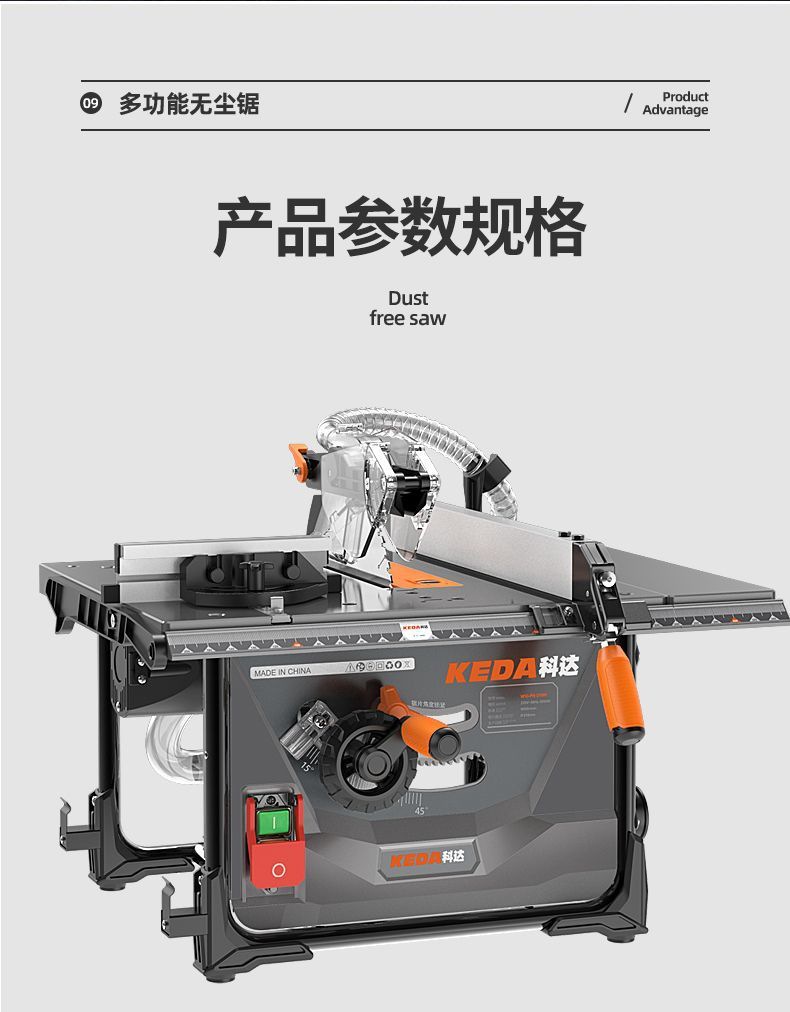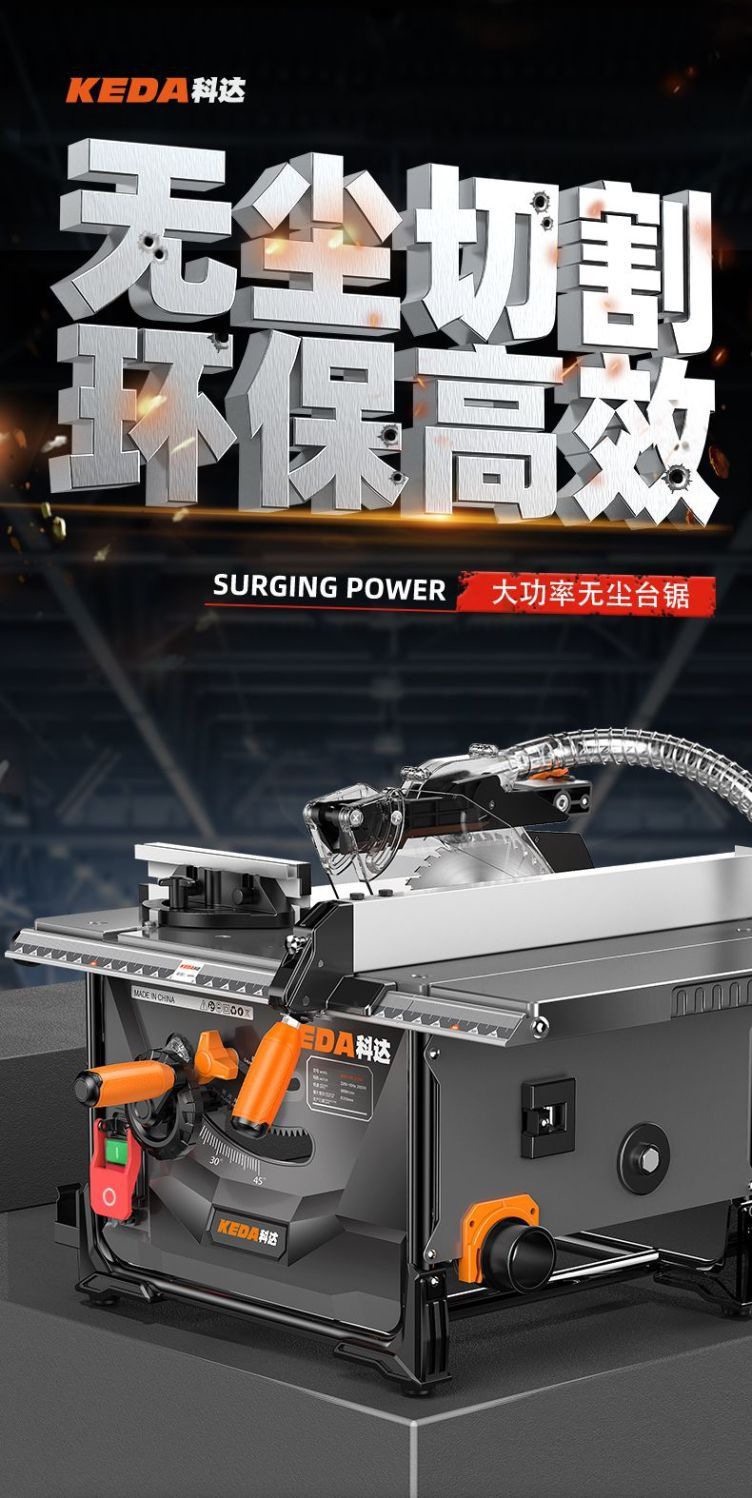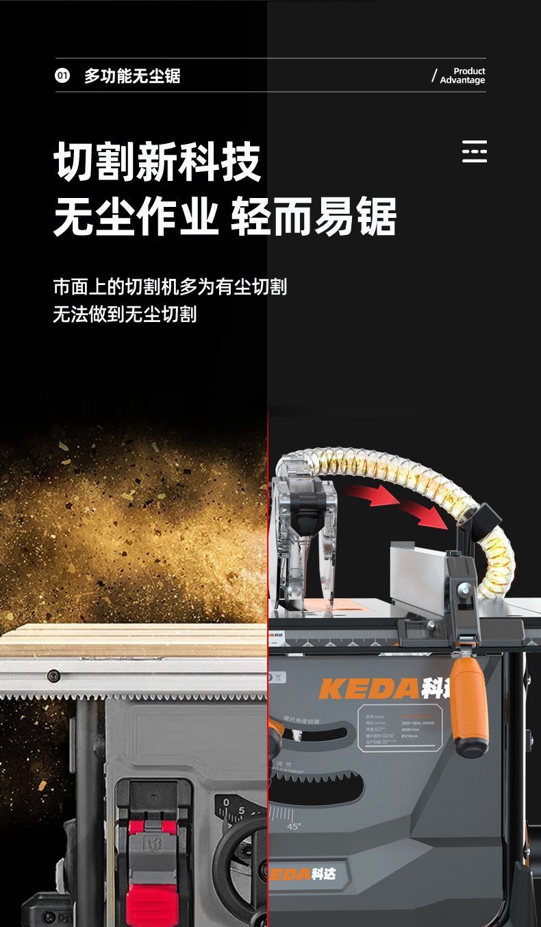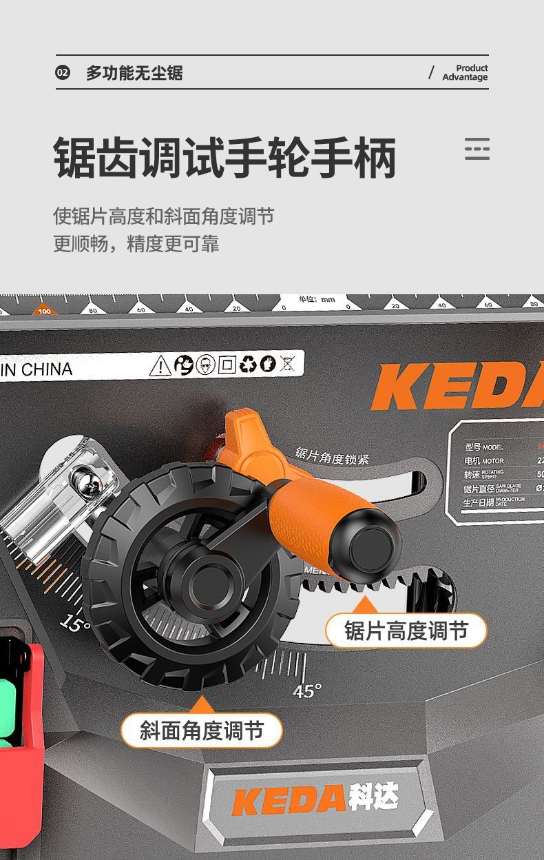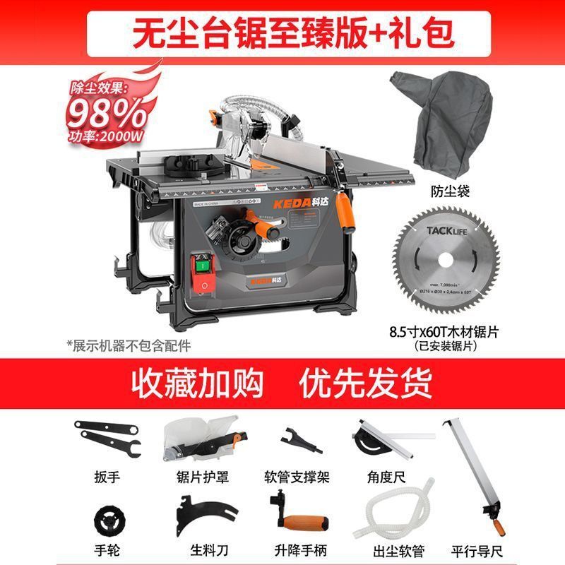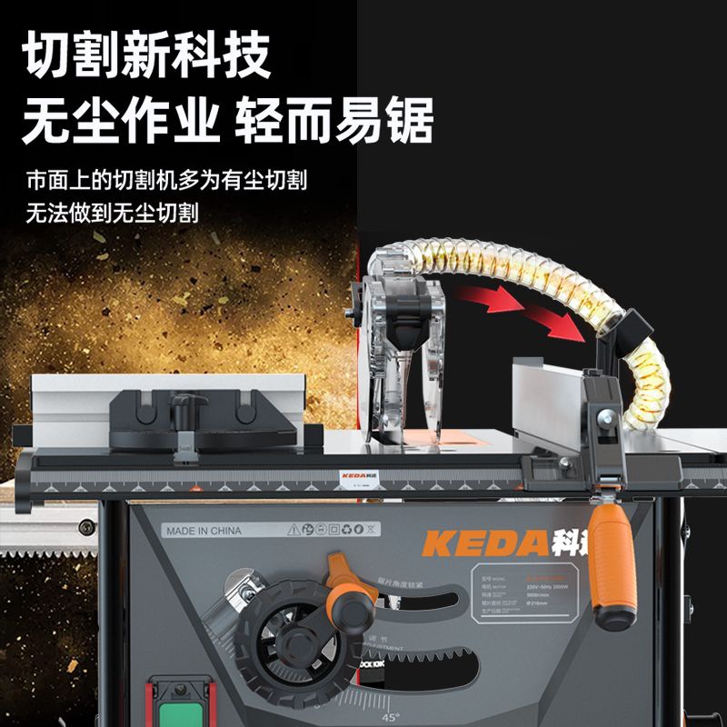 Keda 먼지 없는 톱 다기능 테이블 톱 정밀 절단기 45 ° 집 전체 목공을 위한 마감 처리된 순수 구리 기계