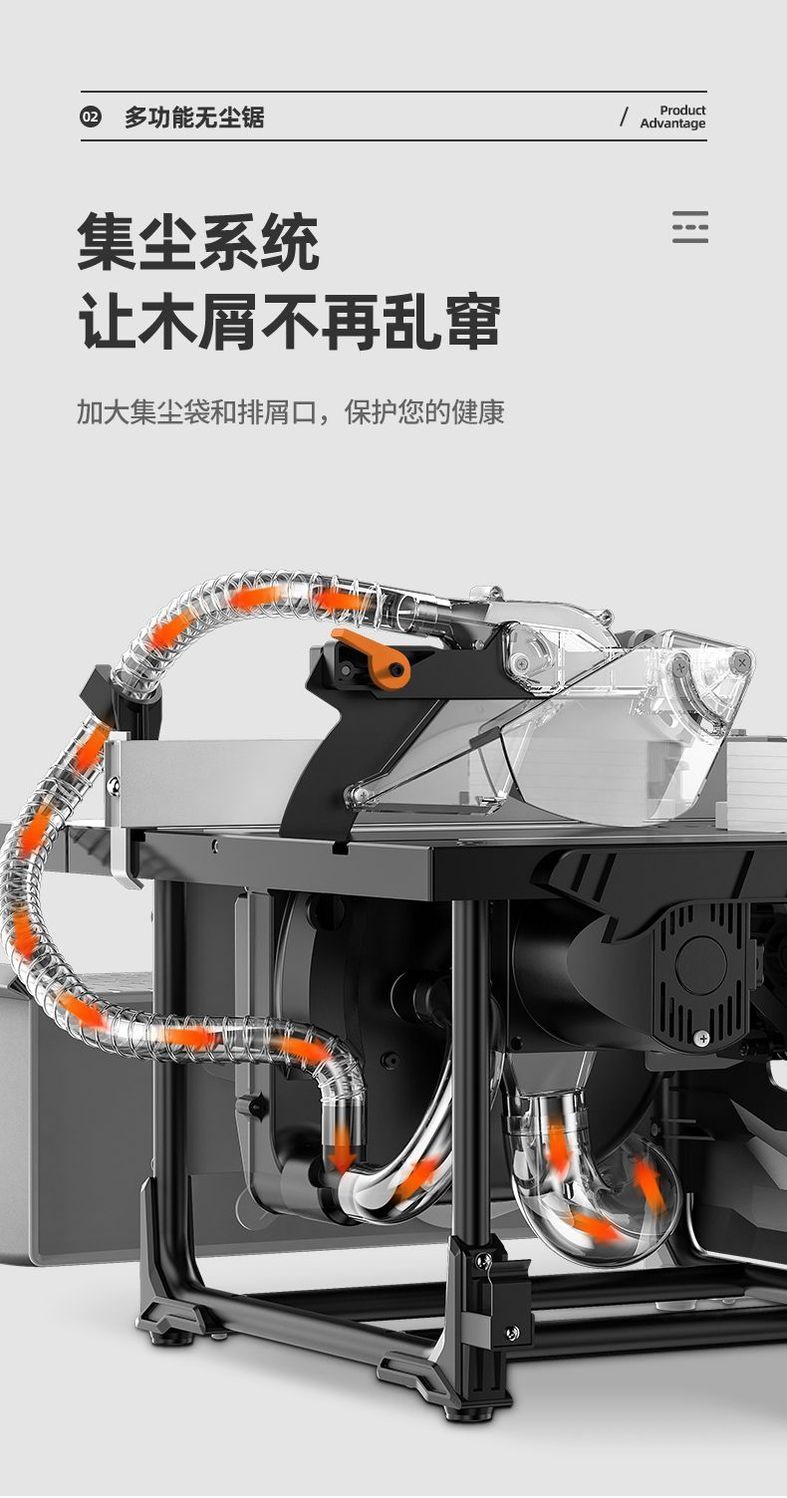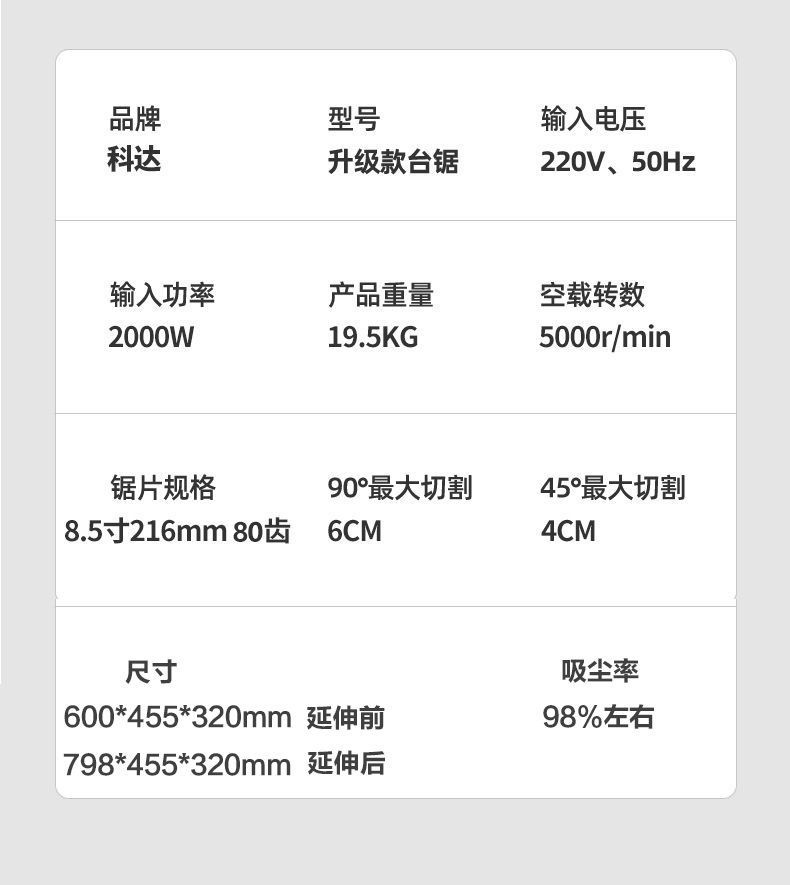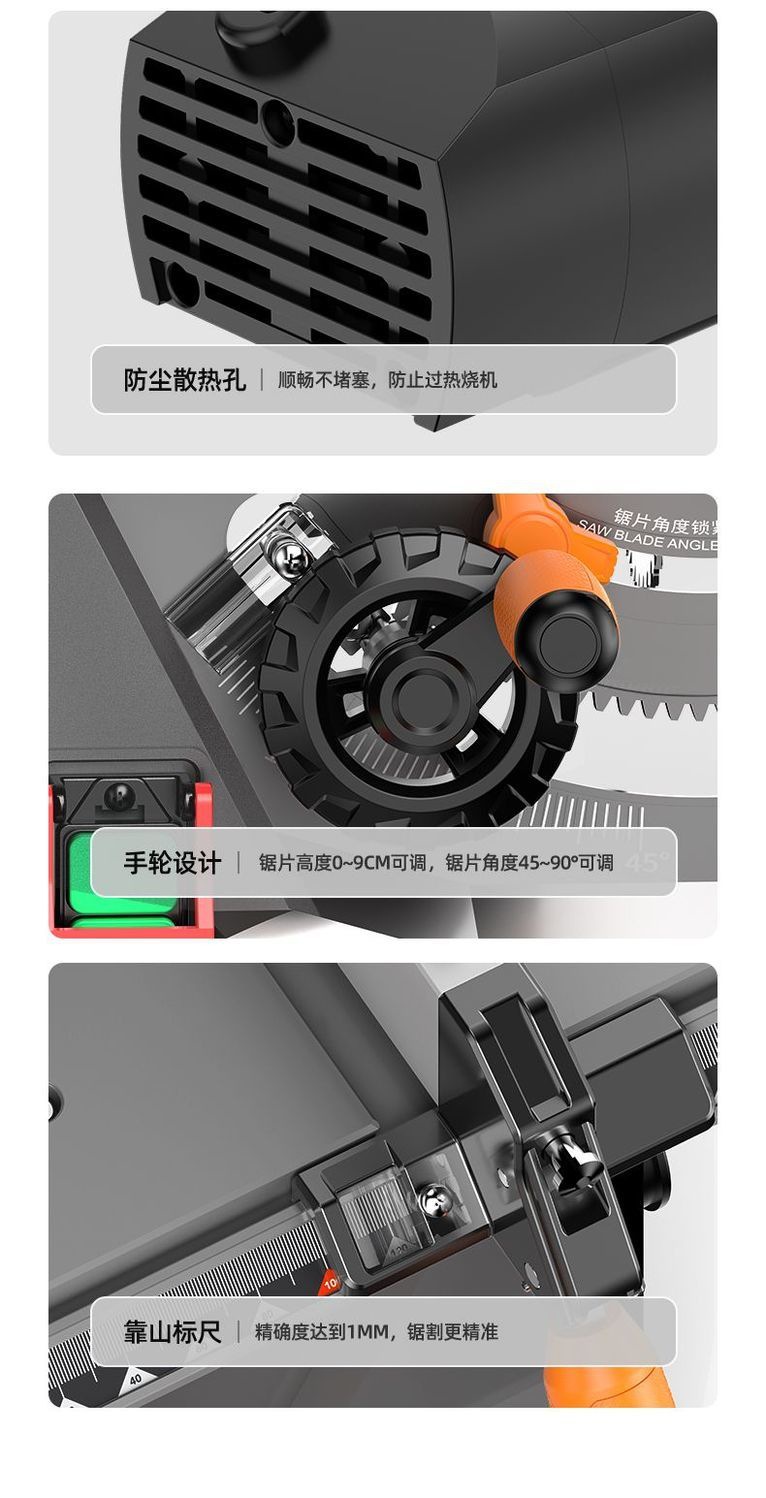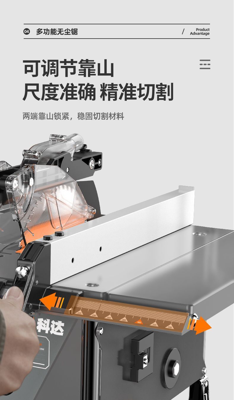 Keda 먼지 없는 톱 다기능 테이블 톱 정밀 절단기 45 ° 집 전체 목공을 위한 마감 처리된 순수 구리 기계