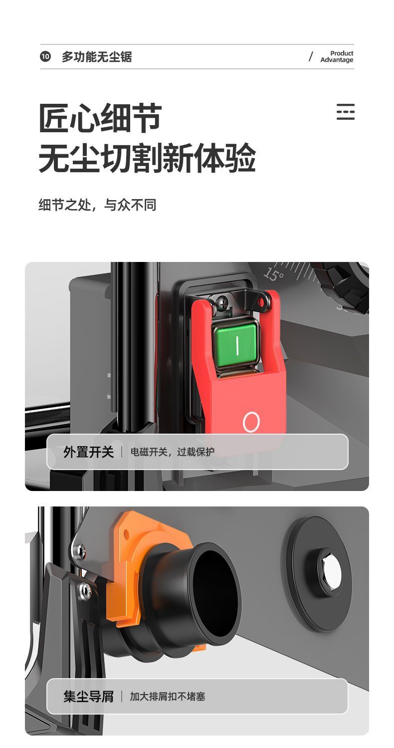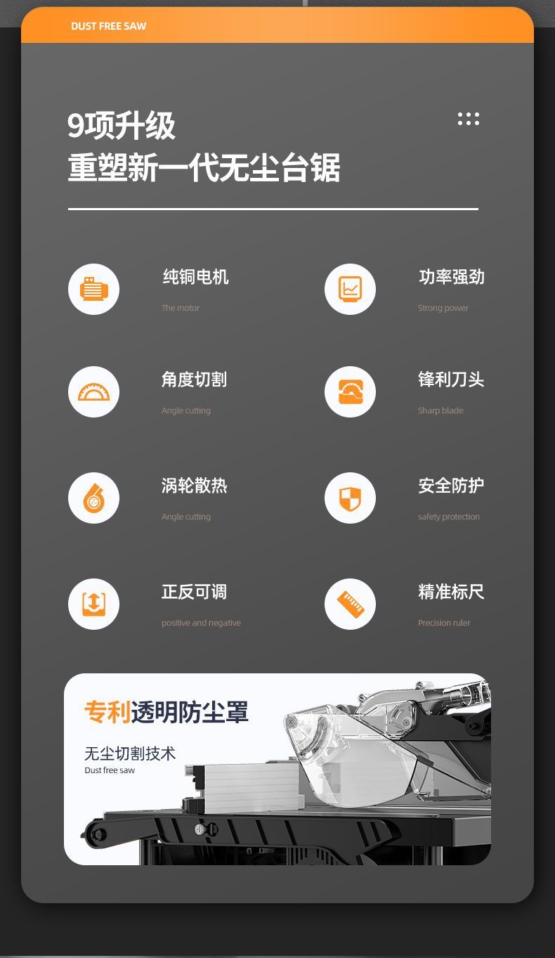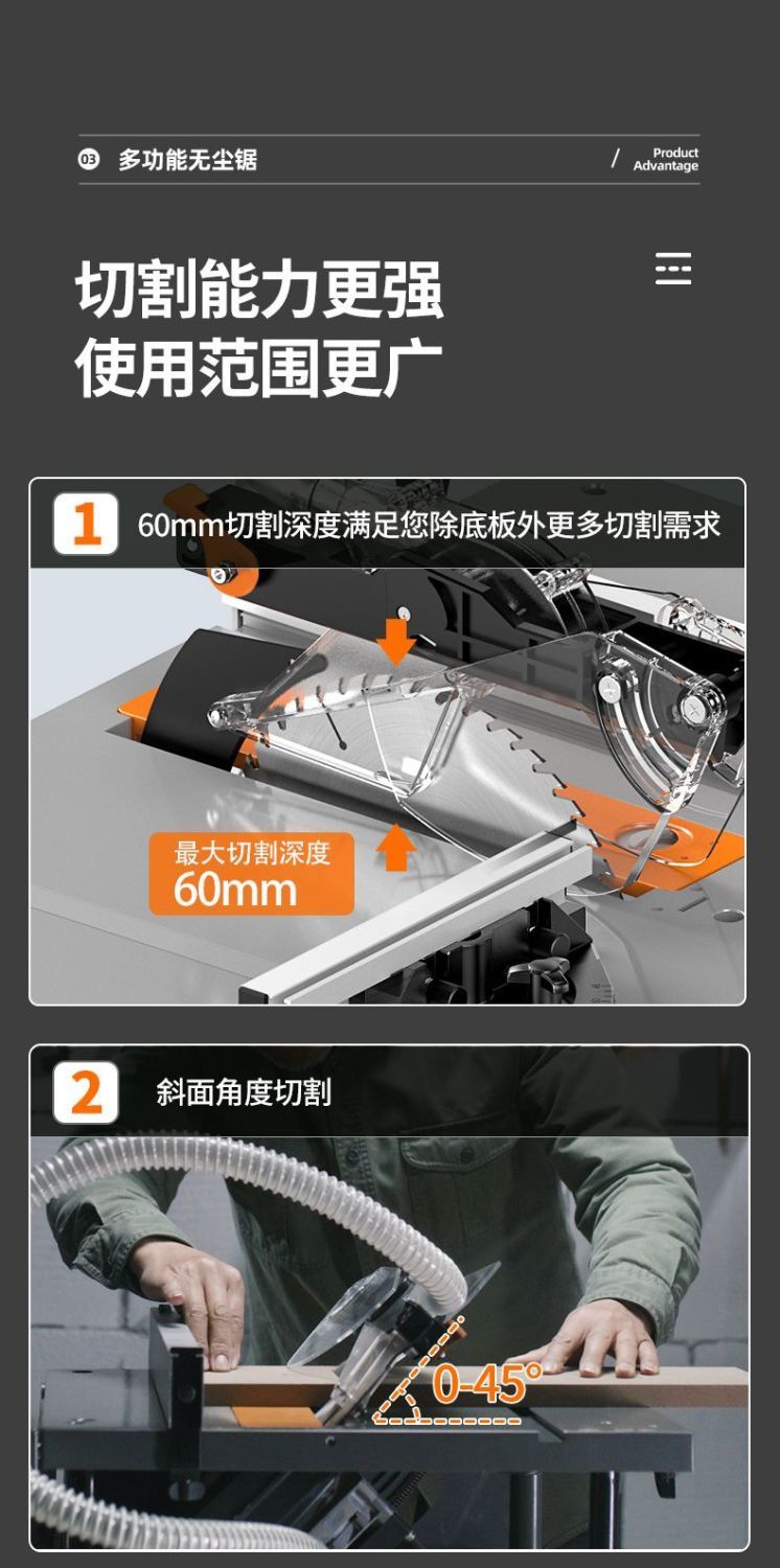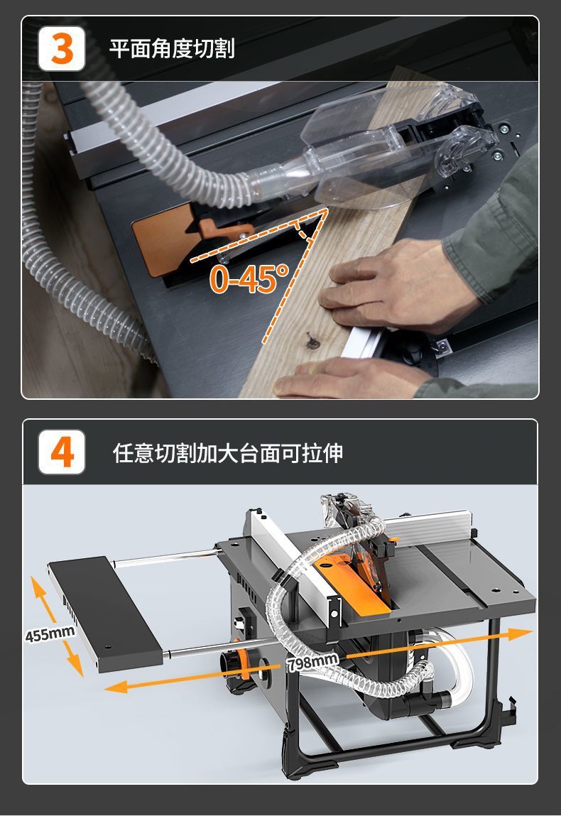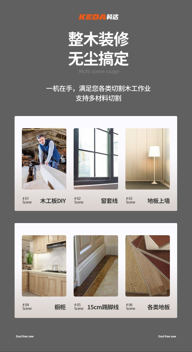 Keda 먼지 없는 톱 다기능 테이블 톱 정밀 절단기 45 ° 집 전체 목공을 위한 마감 처리된 순수 구리 기계
