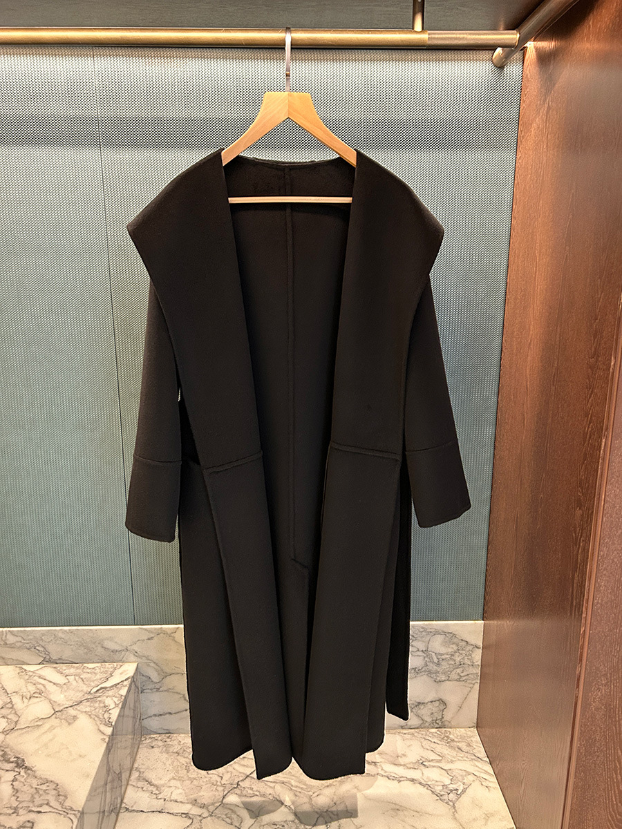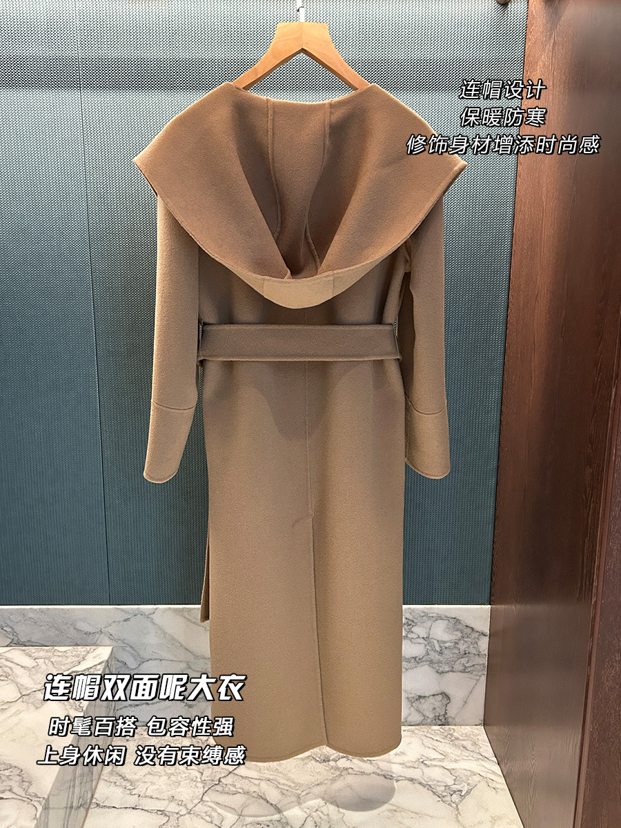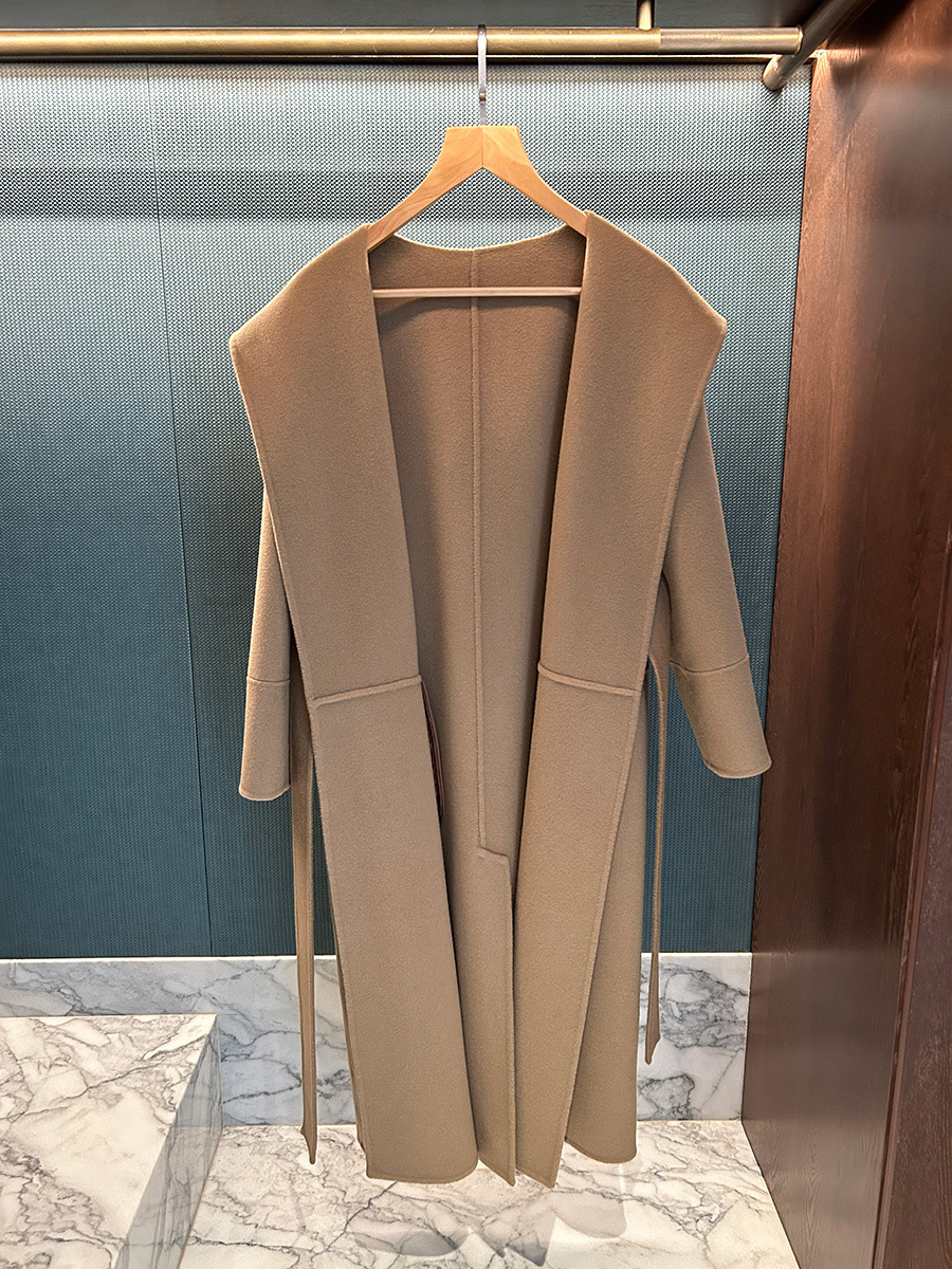 M's Fabio 후드 목욕 가운 캐시미어 울 레이스 업 코트 여성용 양면 울 롱 코트