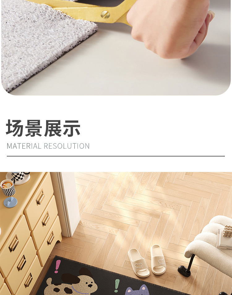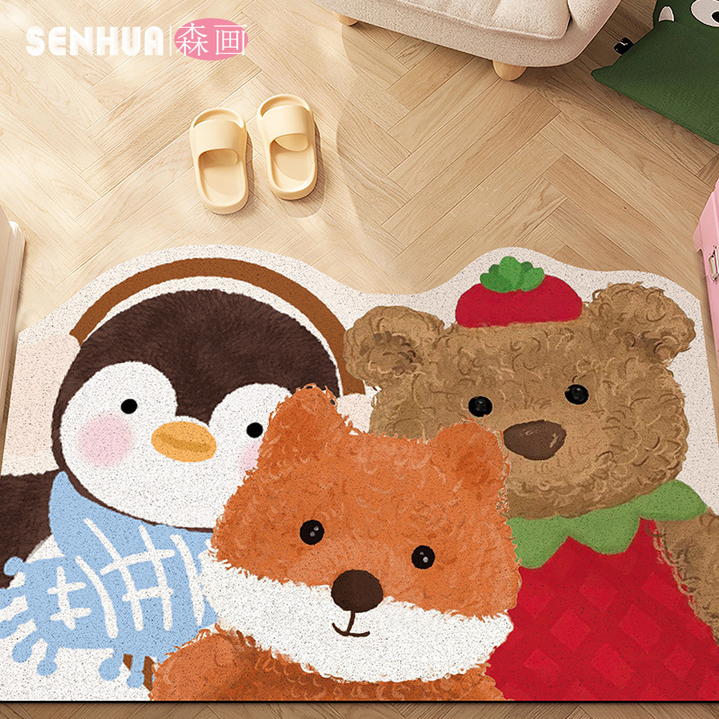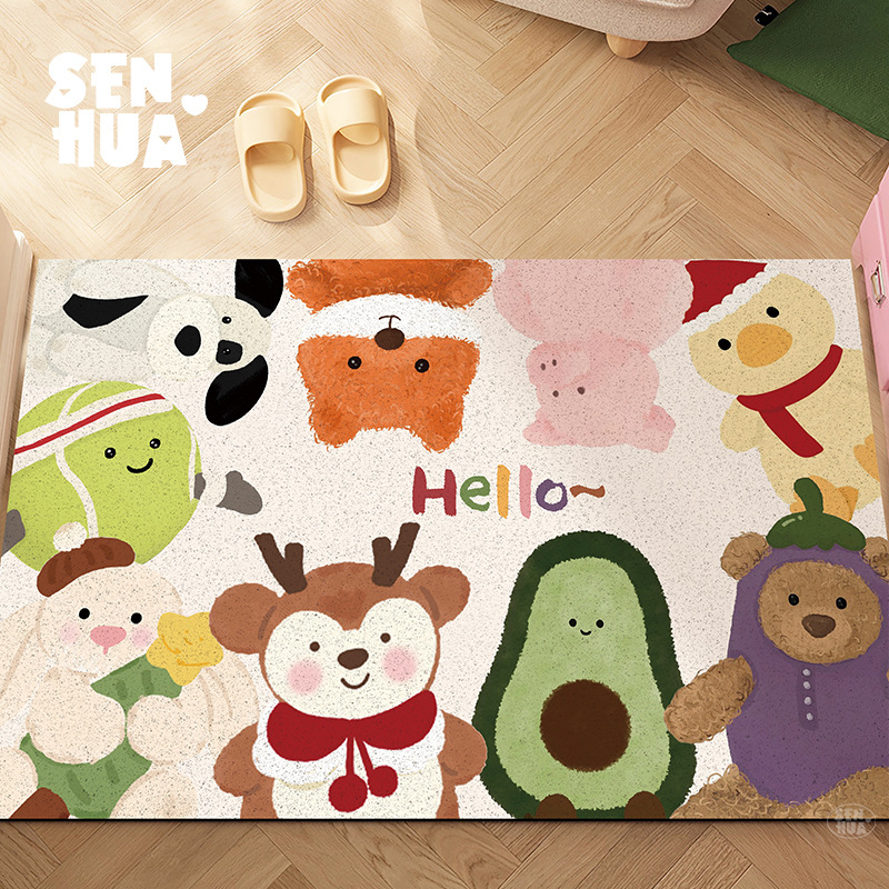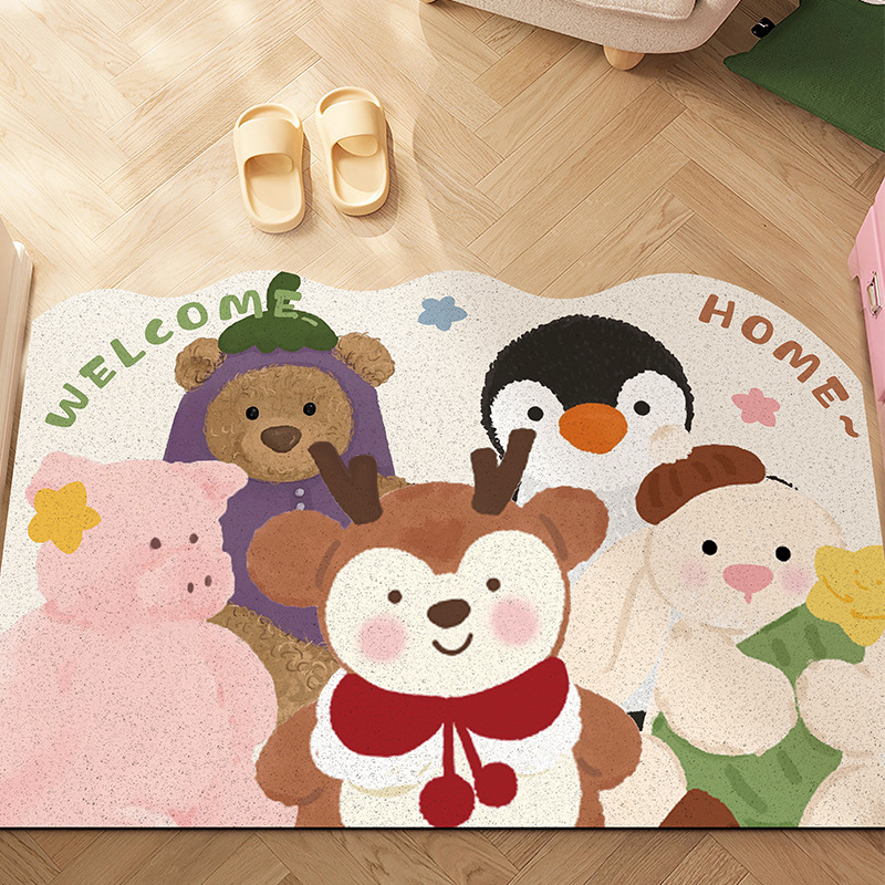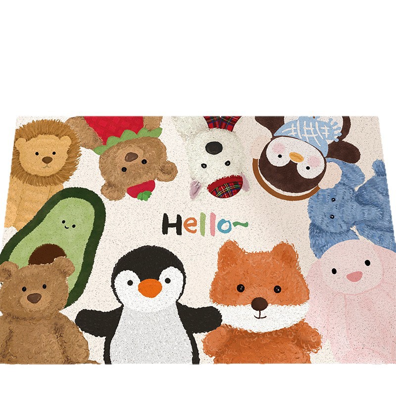 귀여운 인형 와이어 링 PVC 바닥 매트, 내마모성, 미끄럼 방지, 관리 용이, 출입문 매트, 출입구, 절단 가능한 흙 발 매트