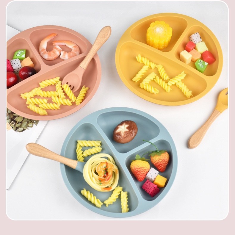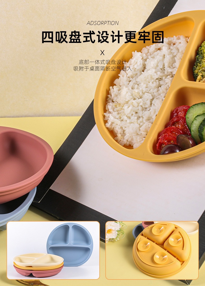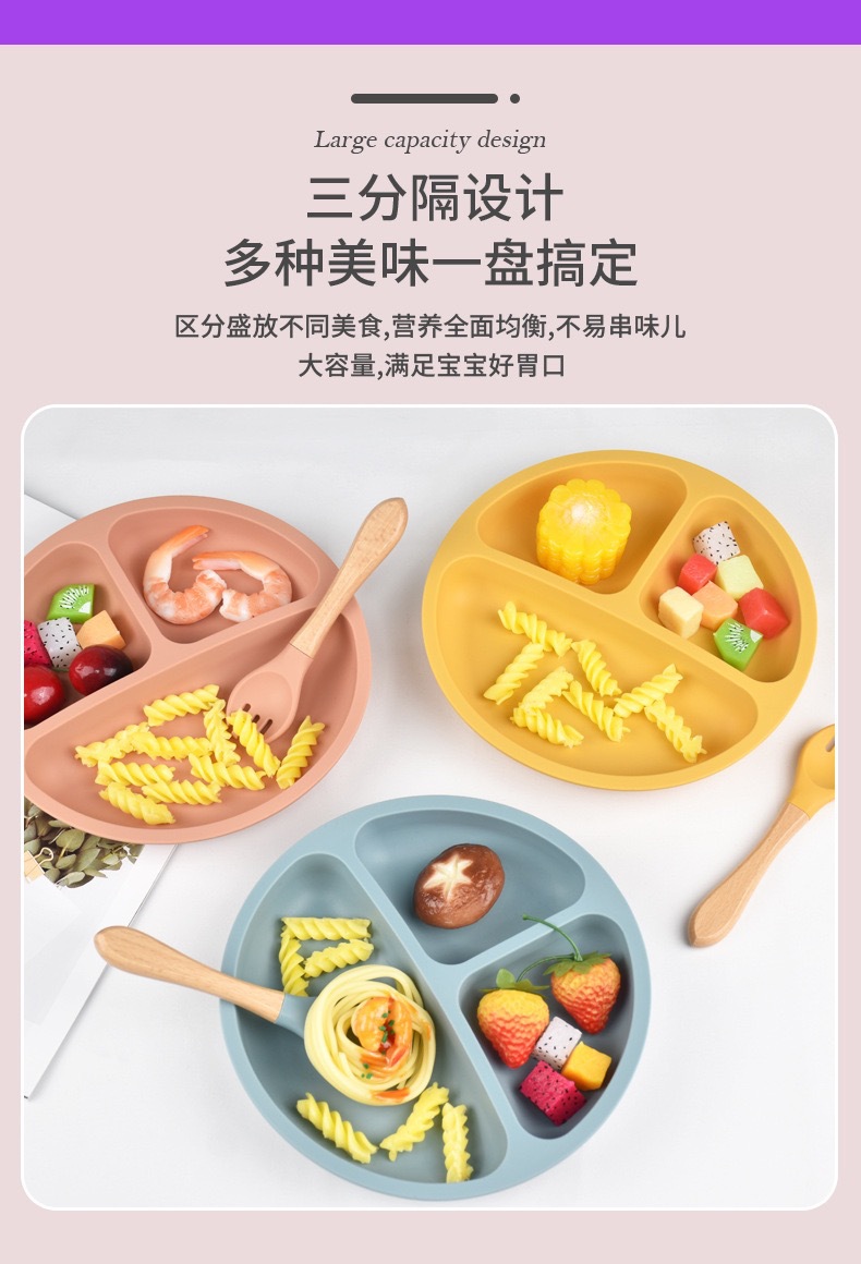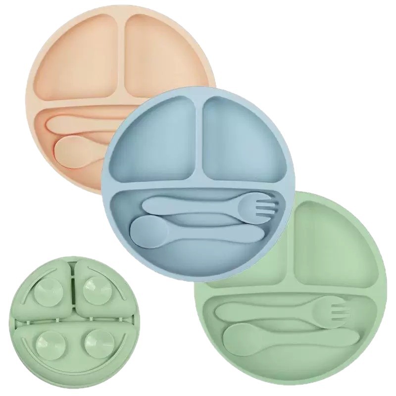 도매 식품 등급 실리콘 식기, 분할 접시, 식품 보충제, 아기 실리콘 스푼 및 포크, 어린이 식기, 국경 간