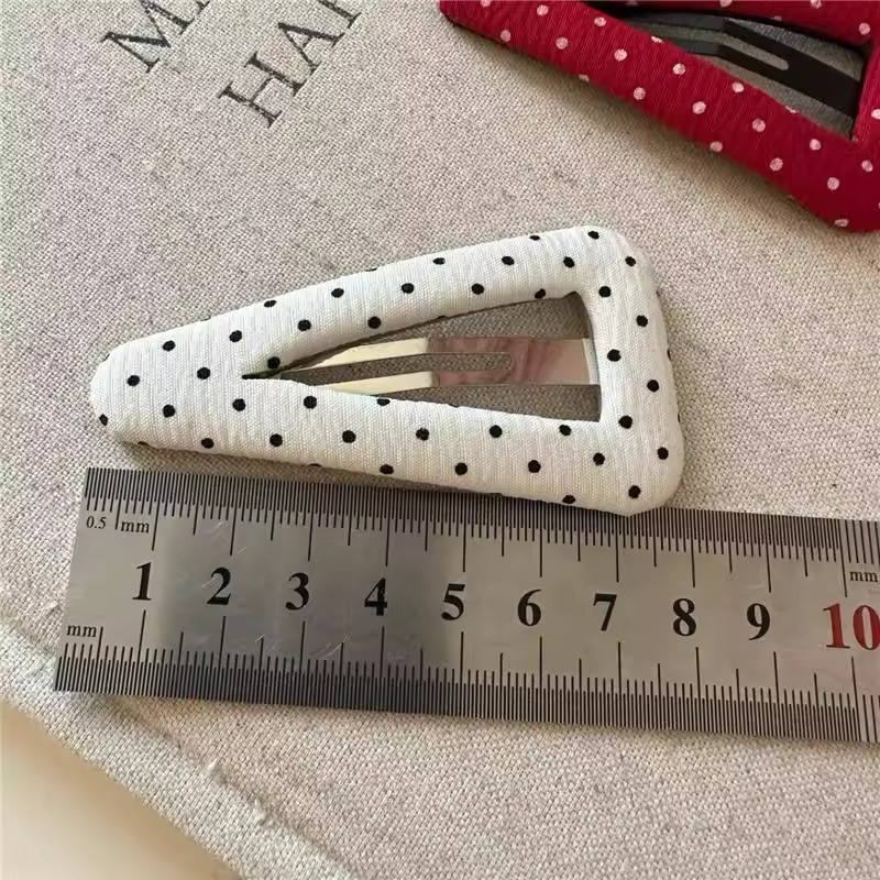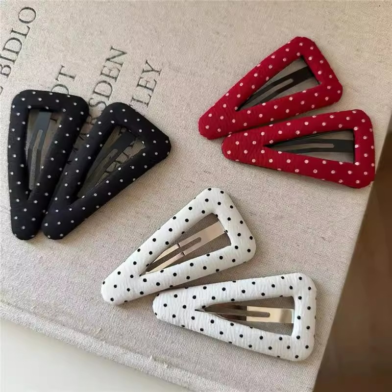 한국의 새로운 흑백 빨간색 폴카 도트 기하학적 삼각형 머리핀 달콤하고 귀여운 앞머리 클립 사이드 클립 헤어 액세서리