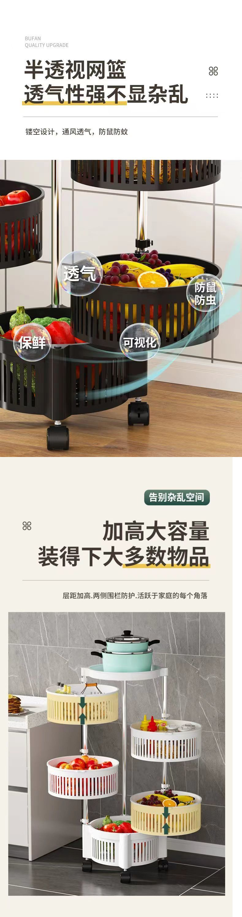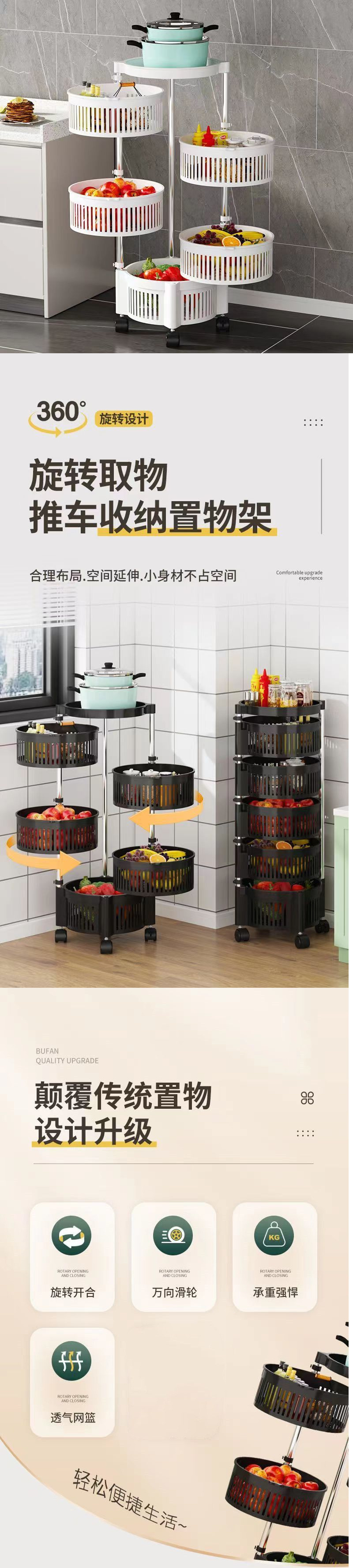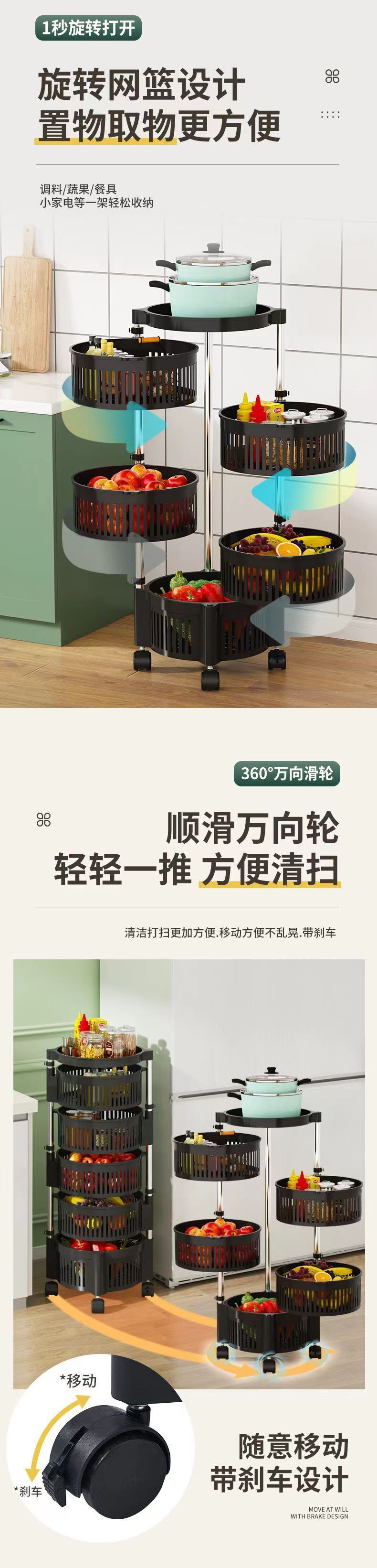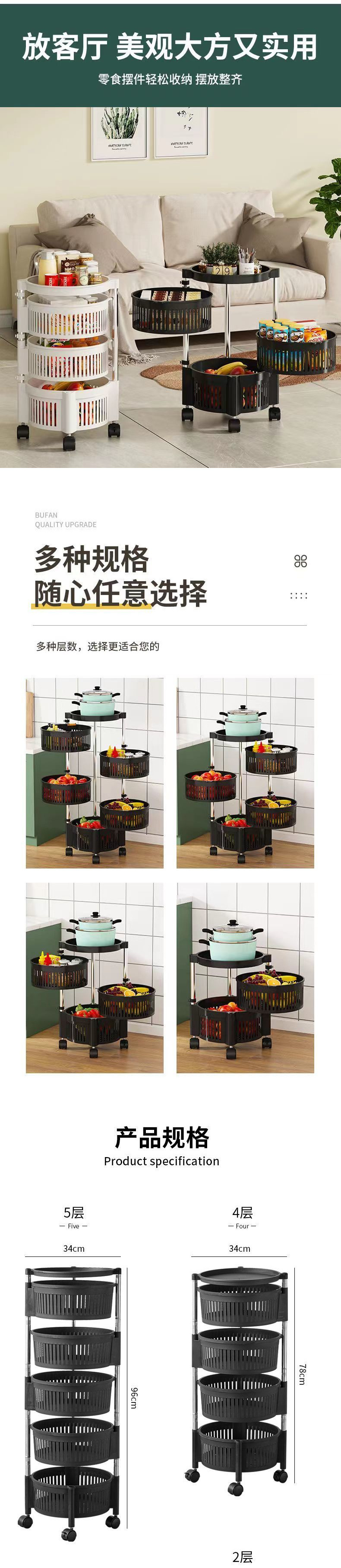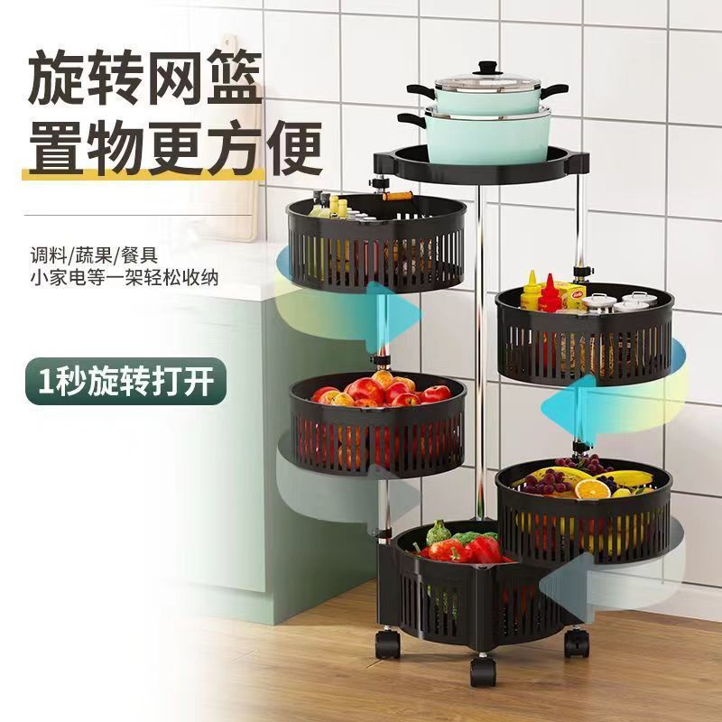 설치가 필요 없는 주방 수납 선반, 가정용 다층 회전식 바닥에서 천장까지 과일 및 야채 수납 선반, 식료품 수납 선반