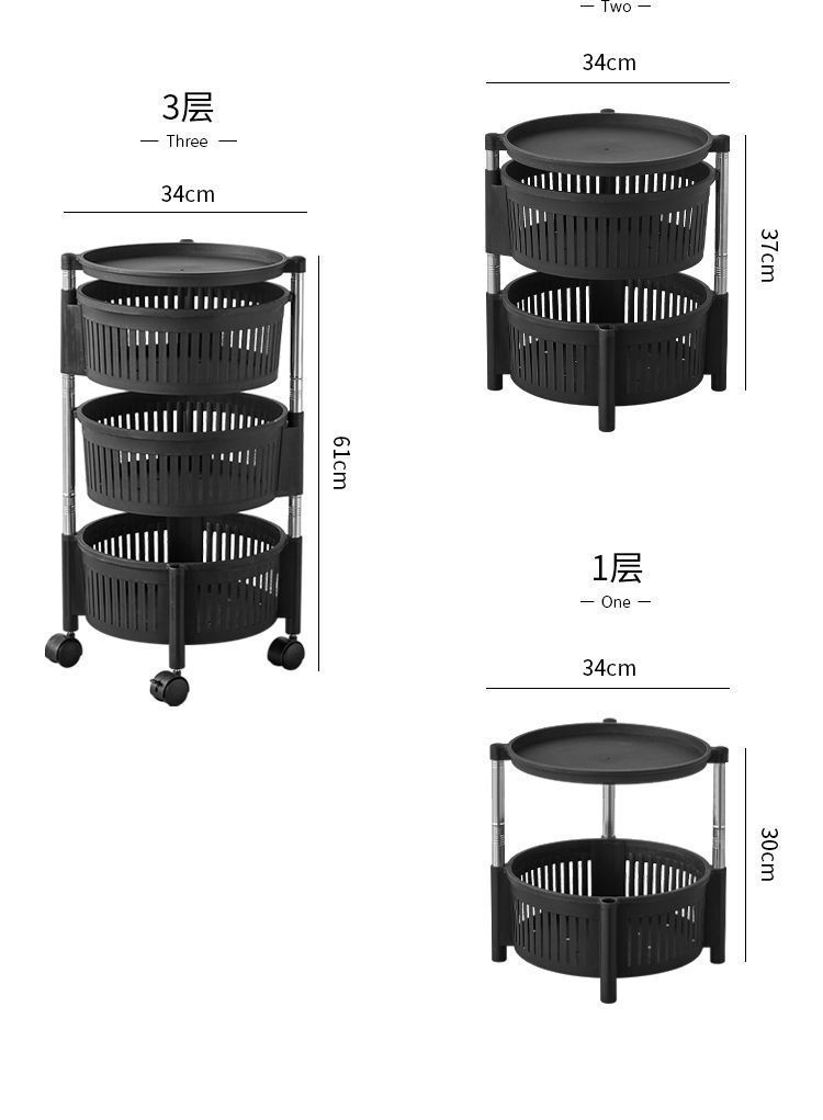 우아한 블랙 - 3겹 [회전 가능] 높이 61cm 직경 31cm