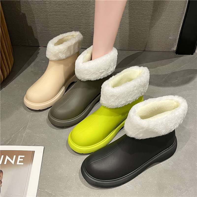 한국 신상 여성 워터슈즈, 벨벳 방수 고무신, 로우탑 따뜻한 레인부츠, 여성용 아웃도어 미끄럼 방지 숏부츠