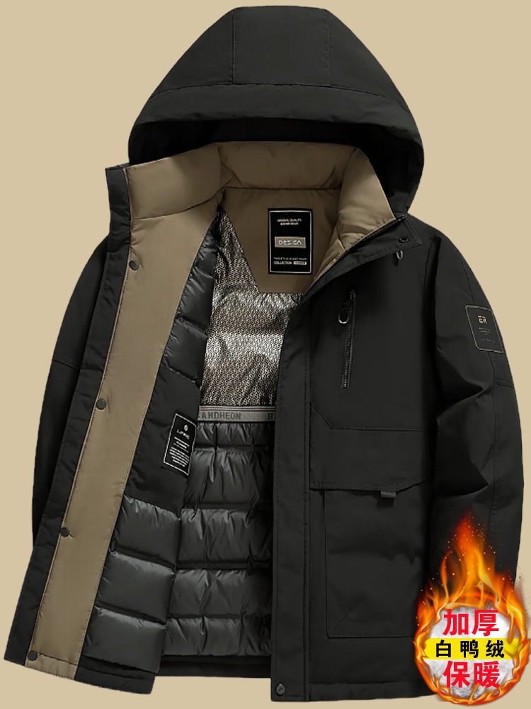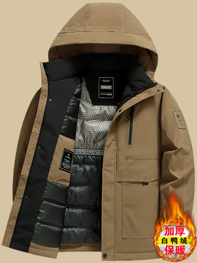 남성용 겨울 짧은 두꺼운 다운 재킷 아빠 캐주얼 따뜻한 겨울 코트 중년 및 노인 방한 오리 다운 재킷