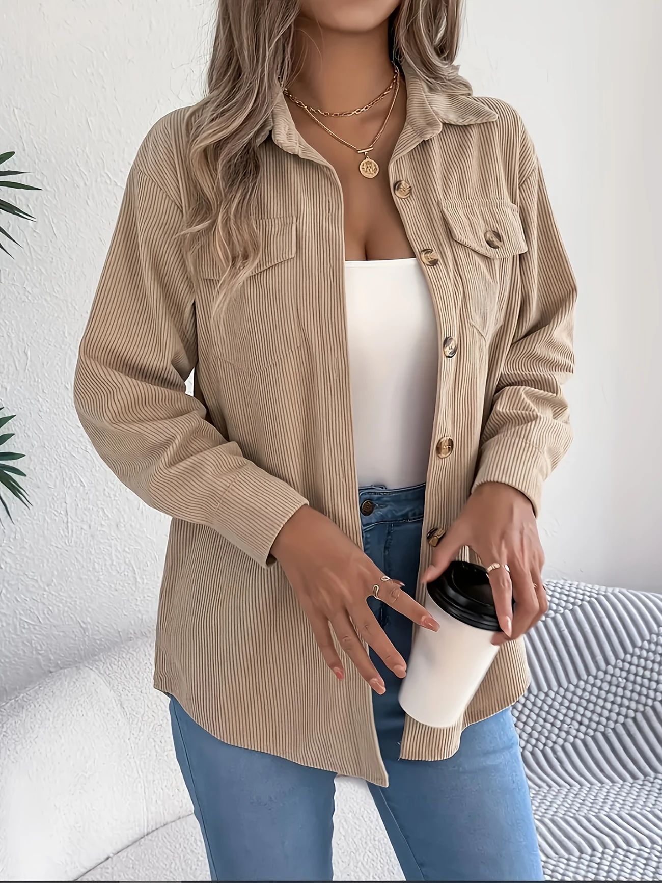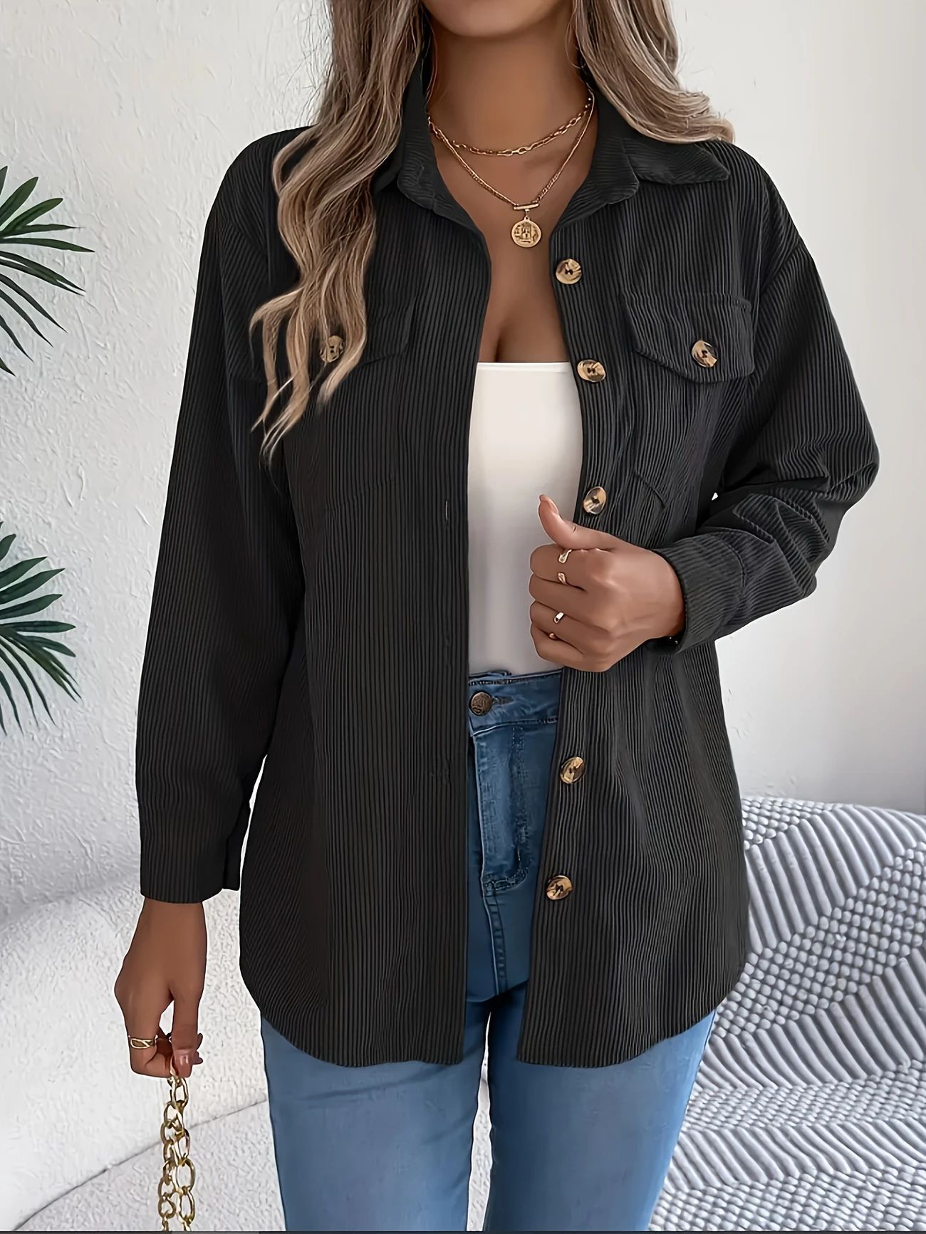 2025년 크로스보더 무역 코듀로이 셔츠 긴팔 여성복 고품질 가을 신상 심플 출퇴근 캐주얼 재킷