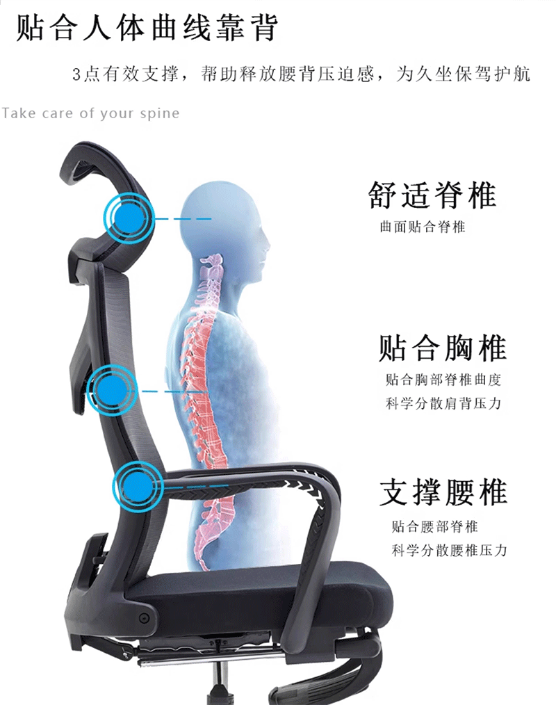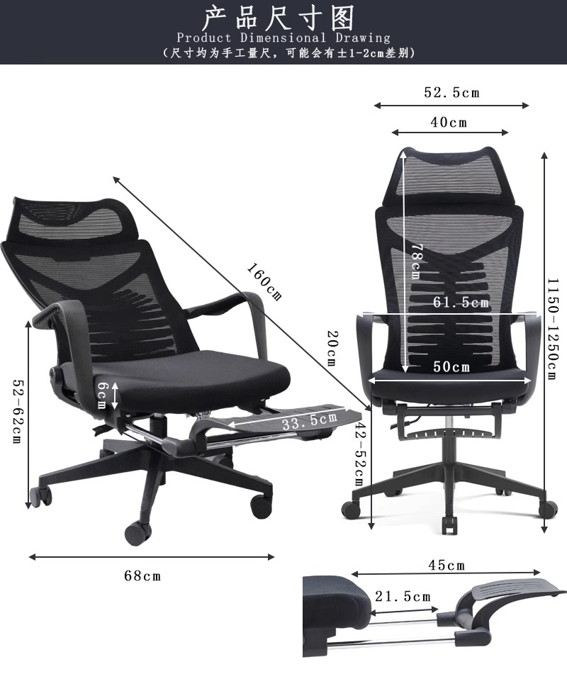 사무실 안락의자, 인체공학적 의자, 튼튼하고 두꺼운 낮잠 의자, 앉고 누울 수 있는 통기성 사무실 의자, 오랫동안 앉아 있는 낮잠