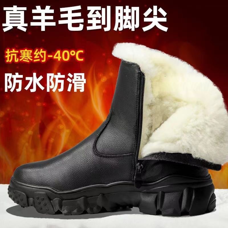 겨울 모피 일체형 마틴 퓨어 울 숏부츠 -40도 남성용 스노우 부츠 미끄럼 방지 북동부 특대형 면화