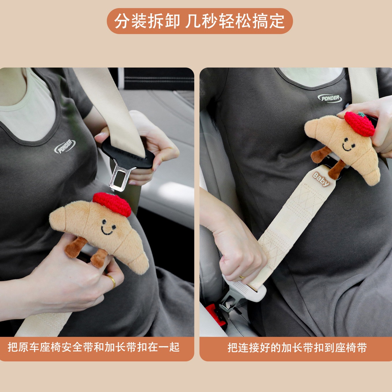 만화 귀여운 임산부 안전벨트, 자동차 탑재형 특수 배 방지, 임신 후기 운전, 배를 지지하는 여성용 고정용품