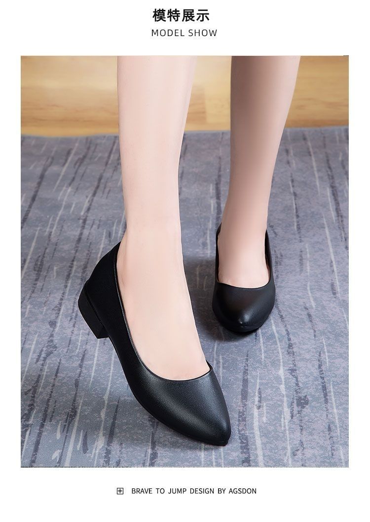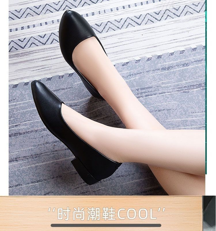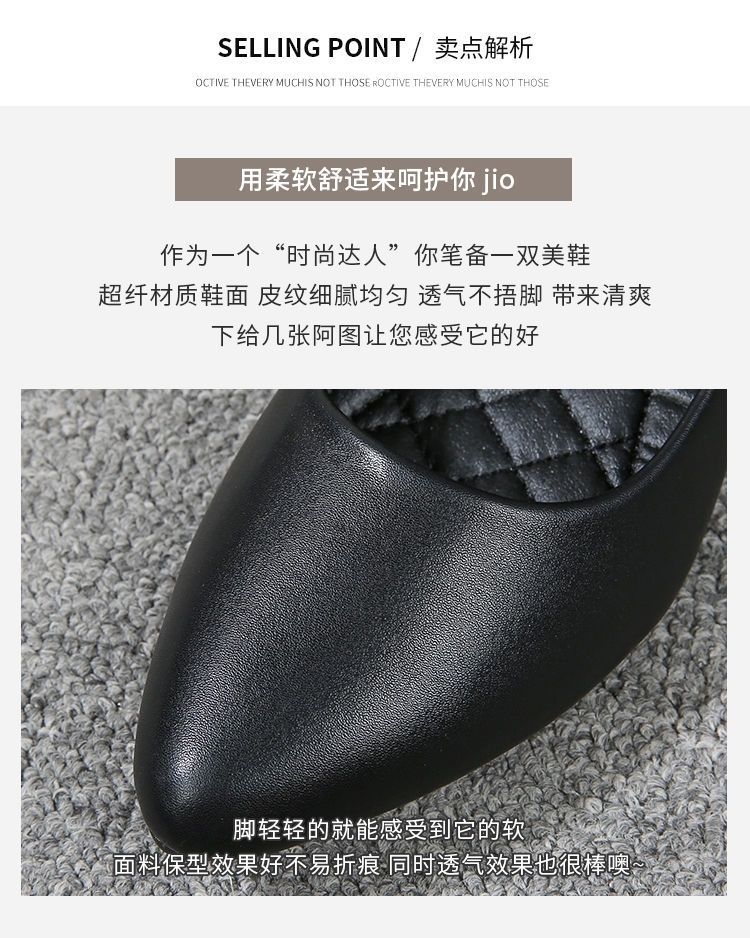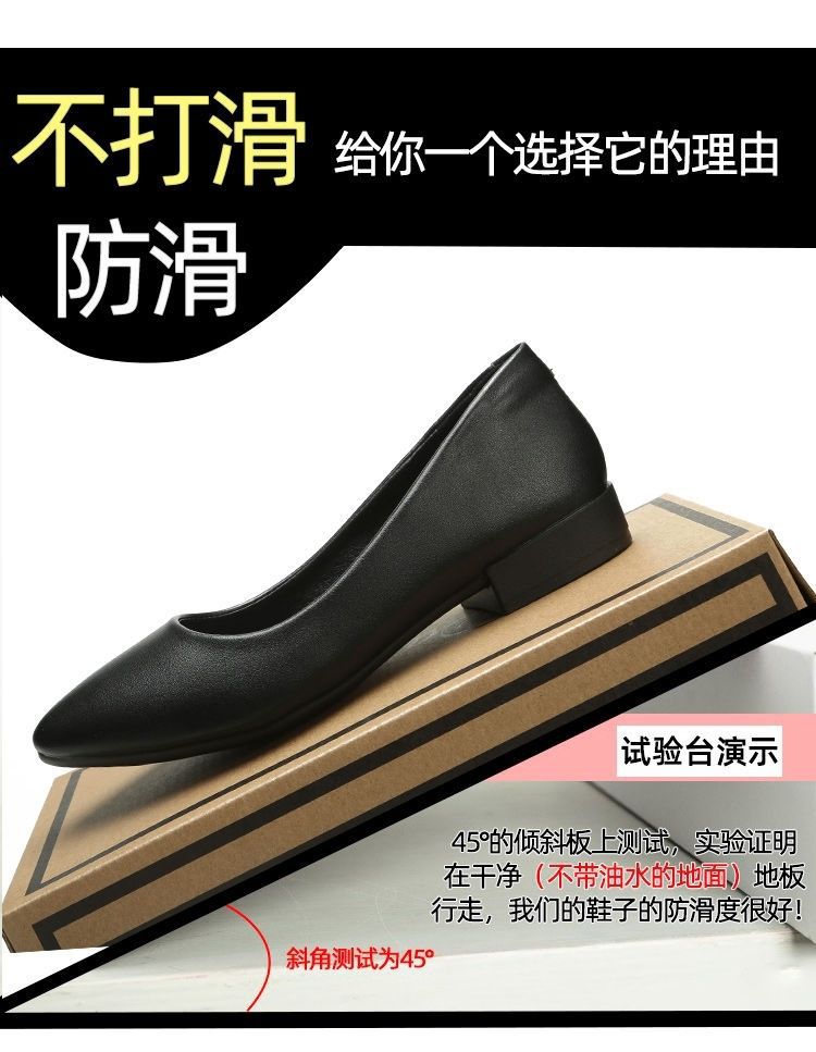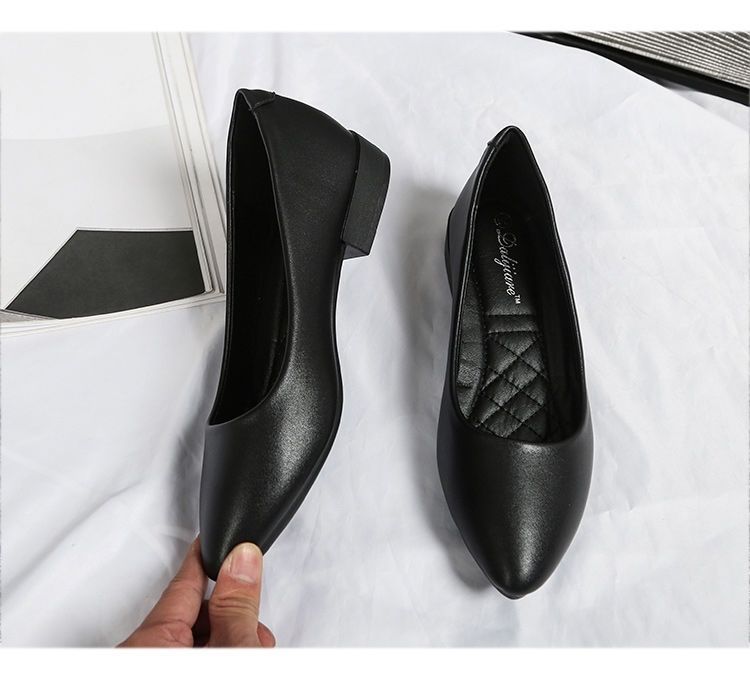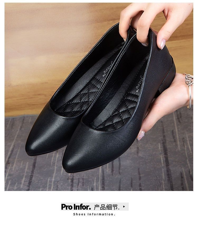 진짜 부드러운 가죽 뾰족한 굽 플랫 슈즈, 전문 여성화, 검은색 작업화, 부드러운 밑창의 은행 호텔 작업화