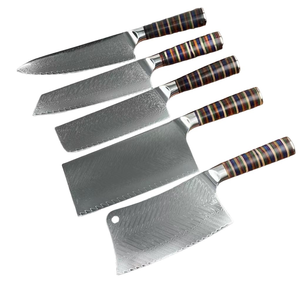 다마스커스 강철 주방 칼 클립 VG10 강철 중국 주방 칼 요리 주방 칼 스테인레스 스틸 다목적 칼 세트