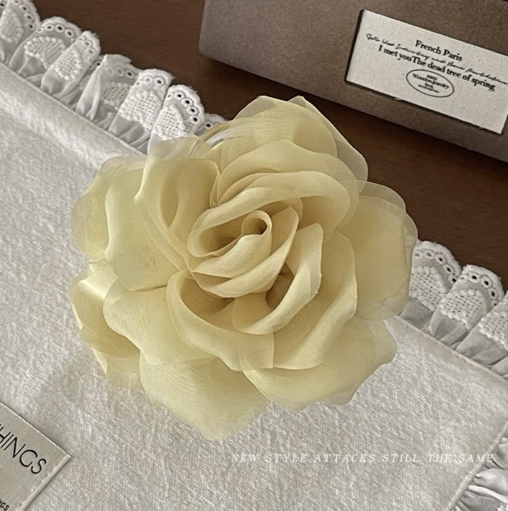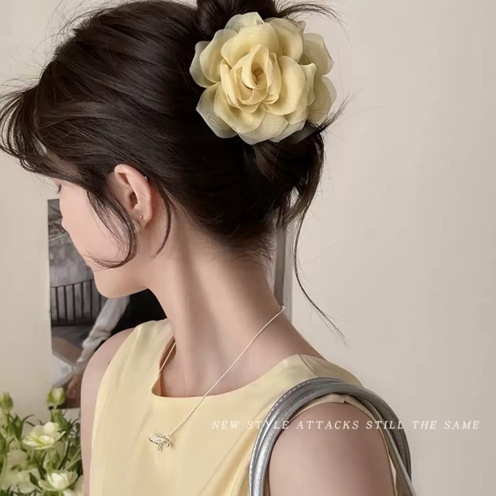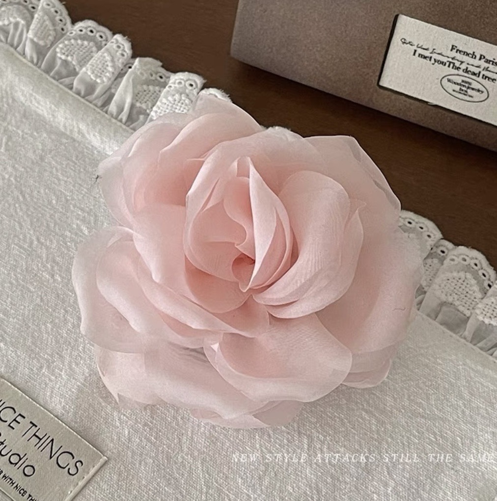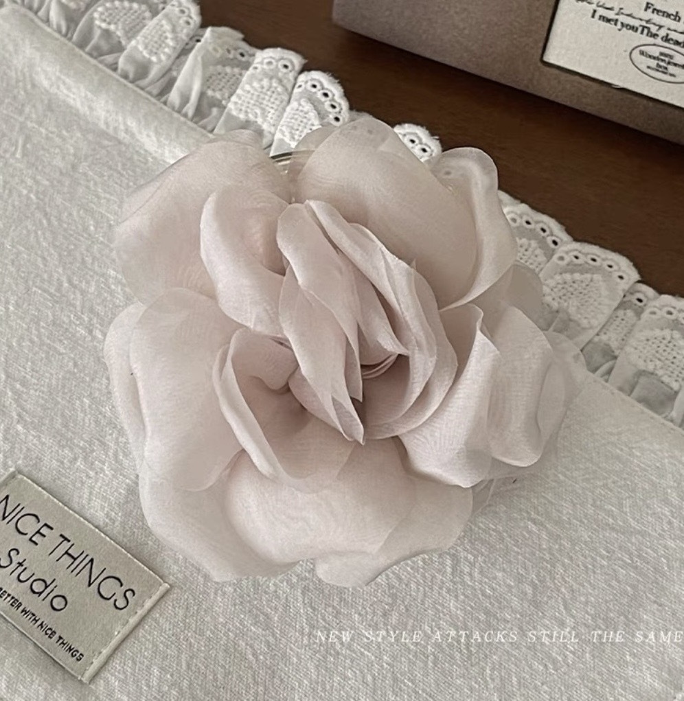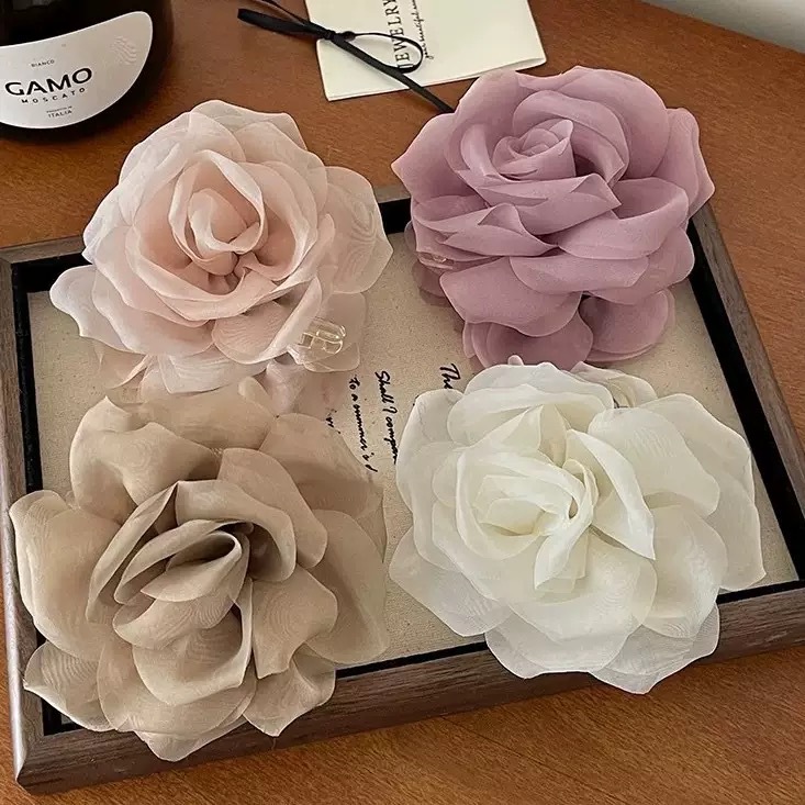 프렌치 스프링 실크 카멜리아 클립 젠틀 스타일 플라워 샤크 클립 2025 뉴 로즈 헤드 헤어 액세서리