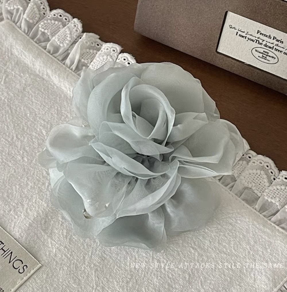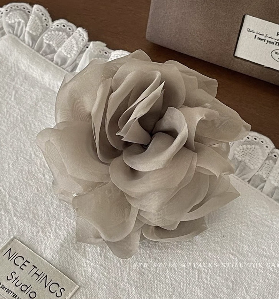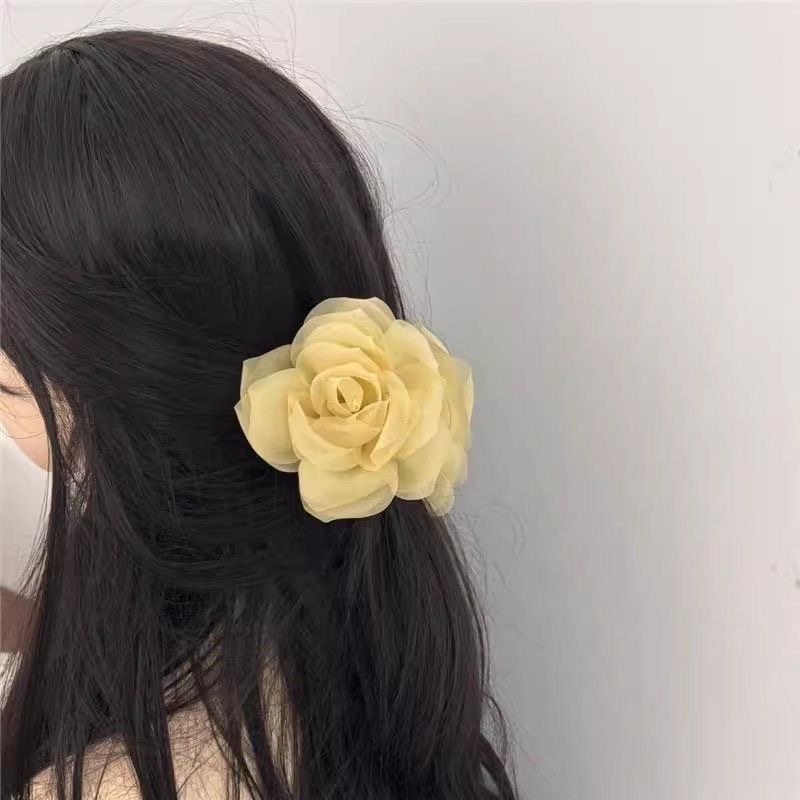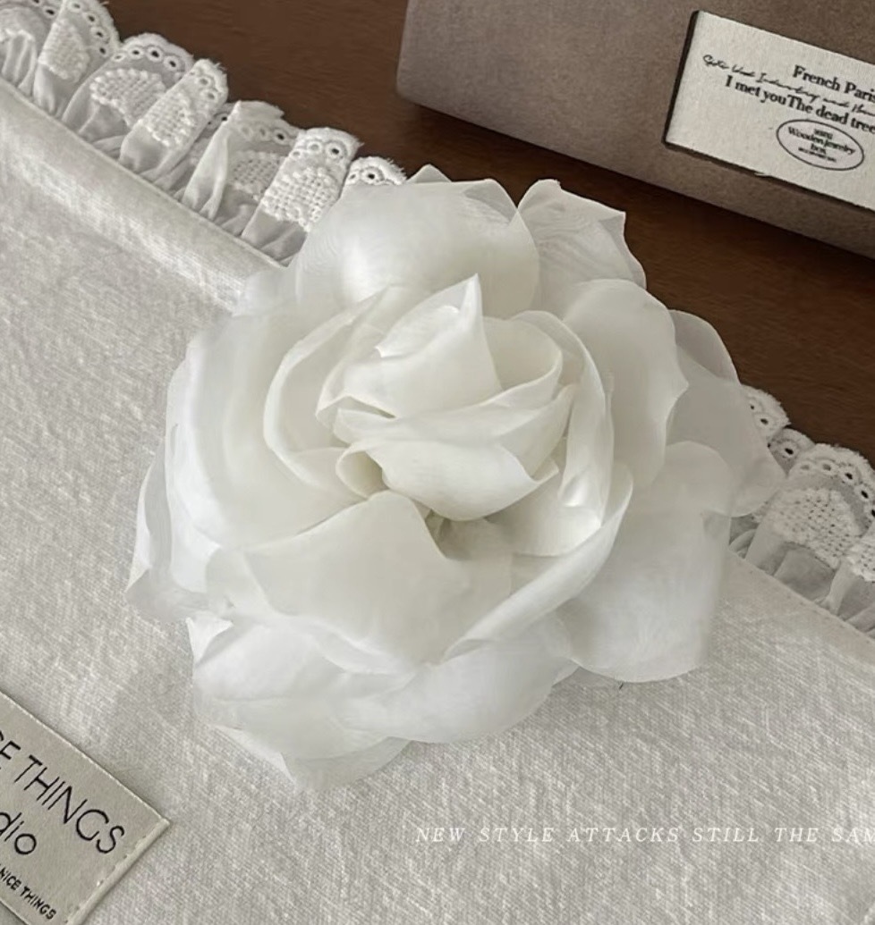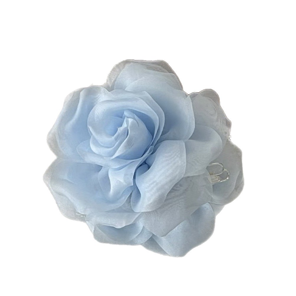 프렌치 스프링 실크 카멜리아 클립 젠틀 스타일 플라워 샤크 클립 2025 뉴 로즈 헤드 헤어 액세서리