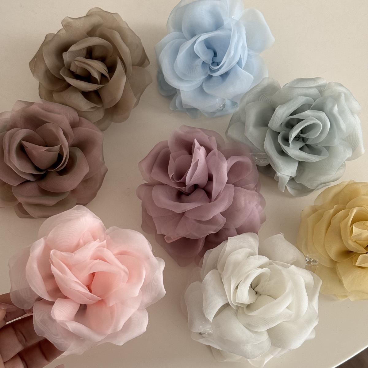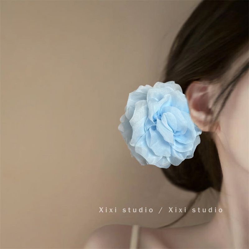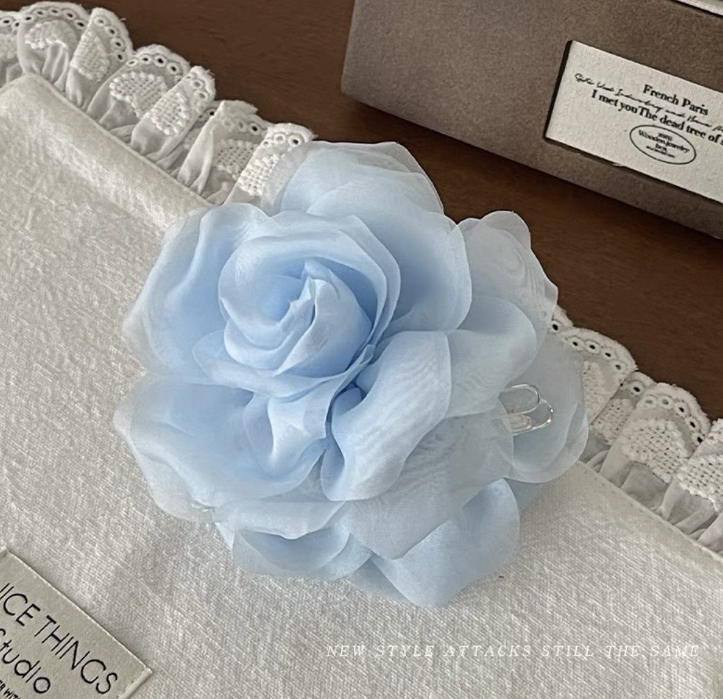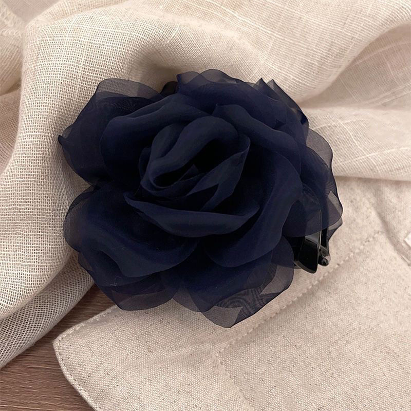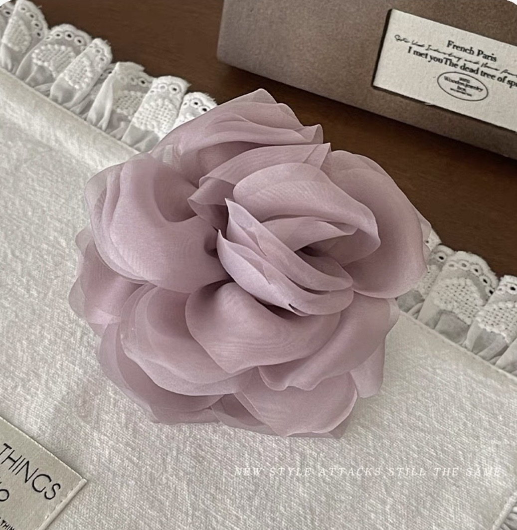 프렌치 스프링 실크 카멜리아 클립 젠틀 스타일 플라워 샤크 클립 2025 뉴 로즈 헤드 헤어 액세서리