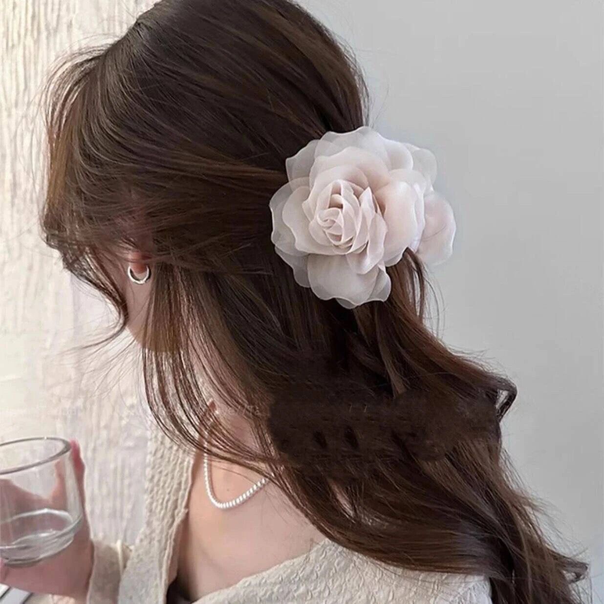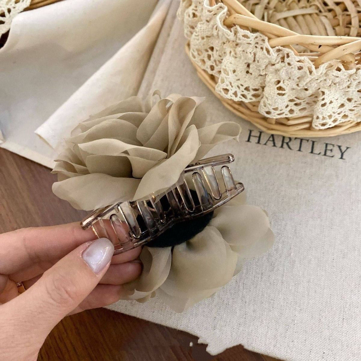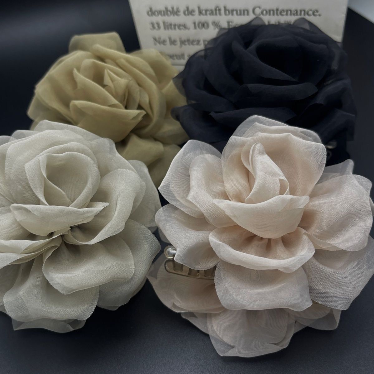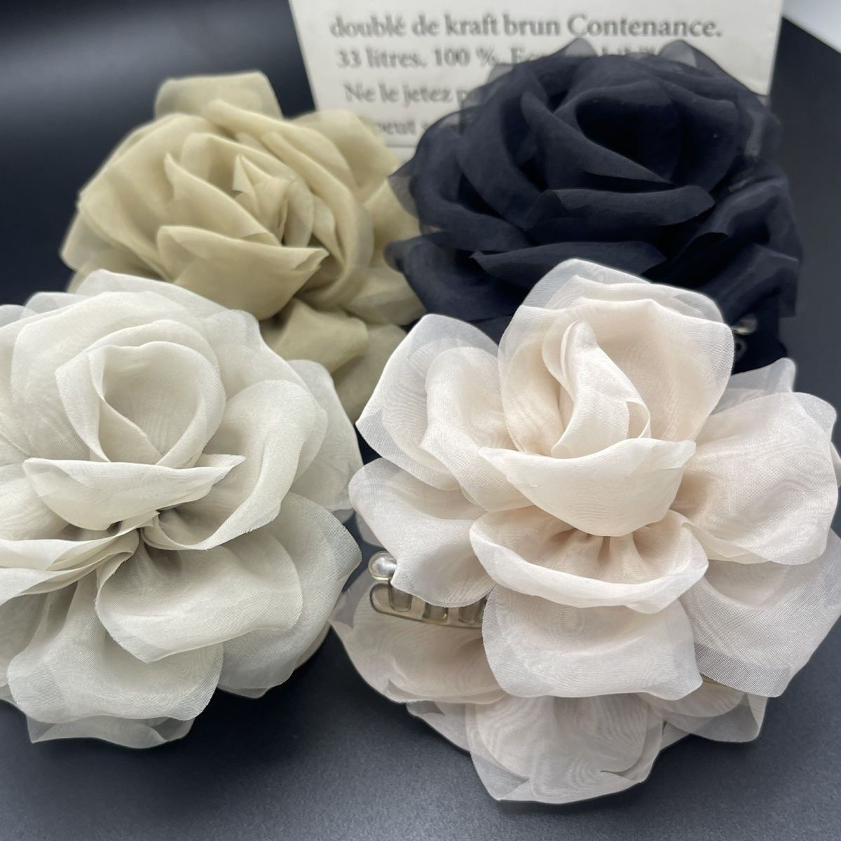 프렌치 스프링 실크 카멜리아 클립 젠틀 스타일 플라워 샤크 클립 2025 뉴 로즈 헤드 헤어 액세서리