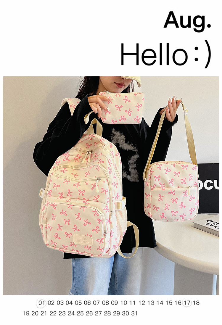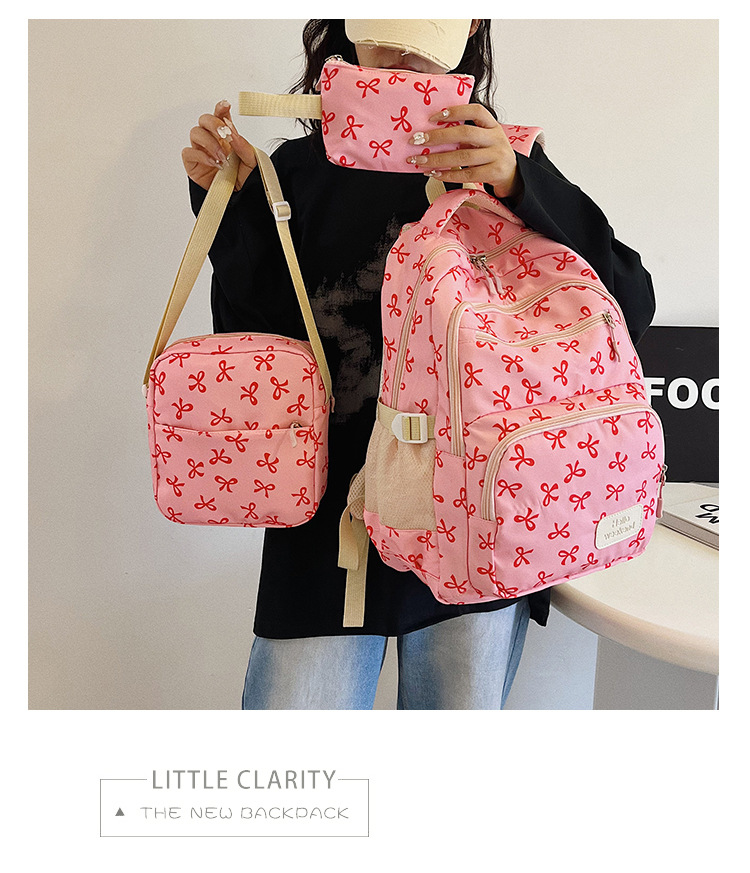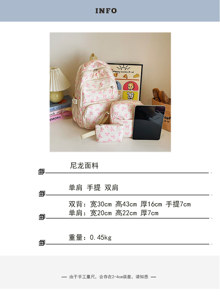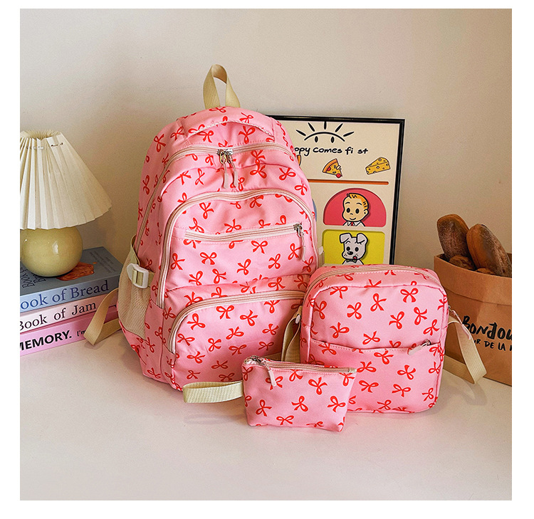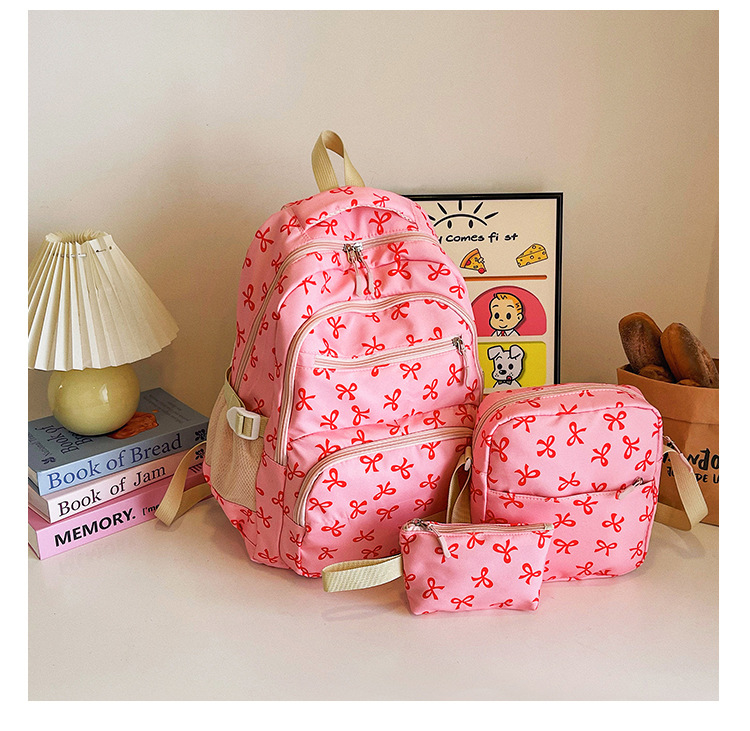3피스 리본 배낭 소녀 하트 대학 스타일 꽃 배낭 한국 달콤한 배낭 대학생 가방