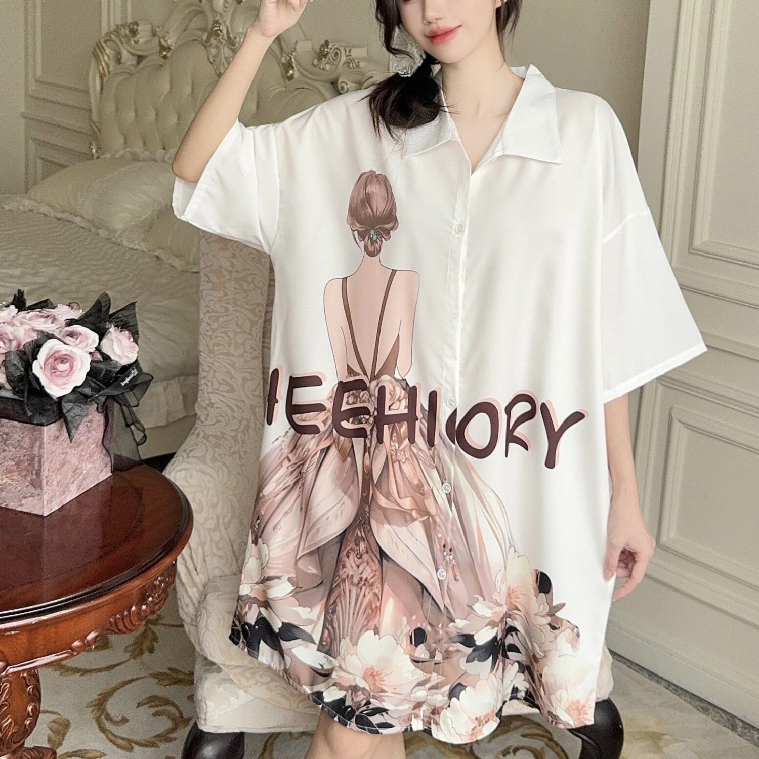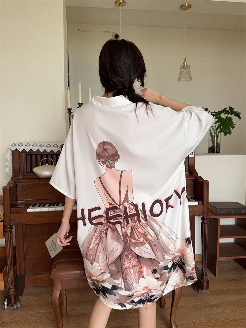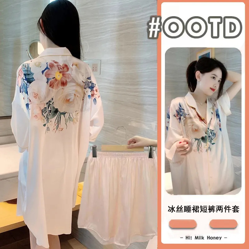 여성을위한 한국 스타일의 새로운 얼음 실크 잠옷 여름 얇은 섹시한 카디건 잠옷 여성을위한 하이 엔드 라이트 럭셔리 느슨한 홈웨어
