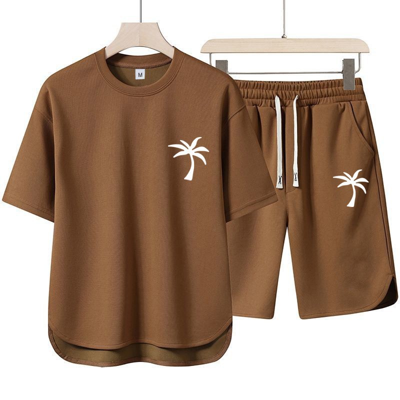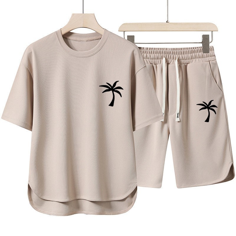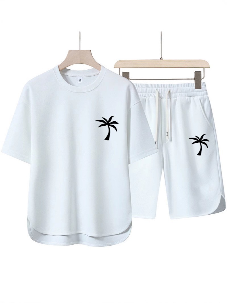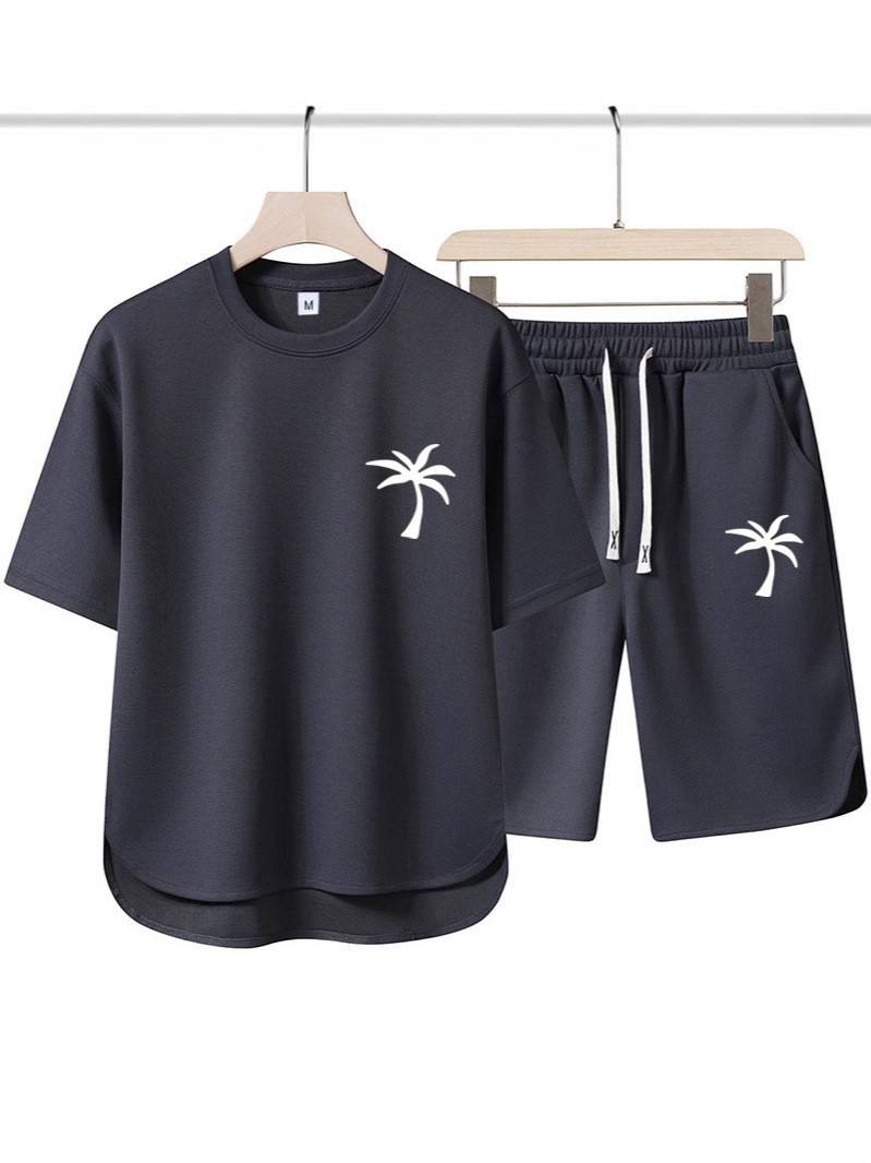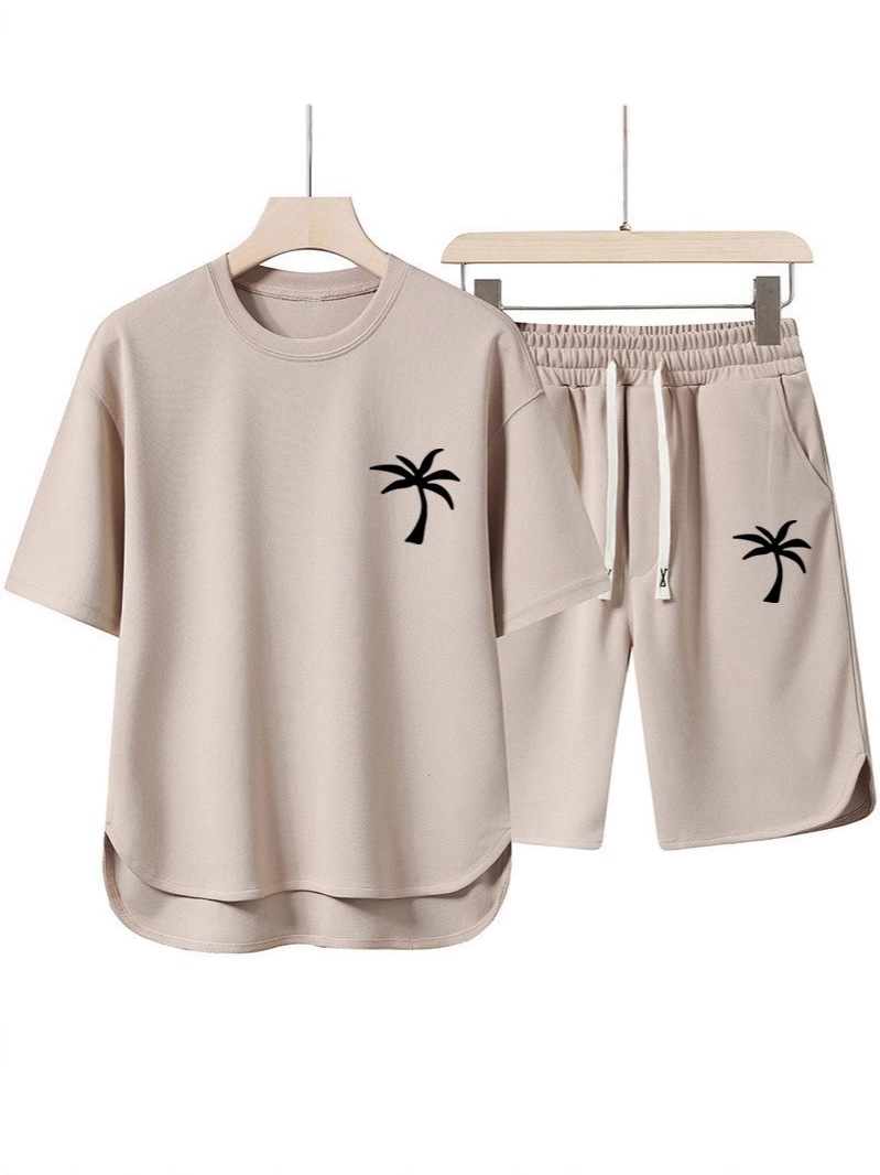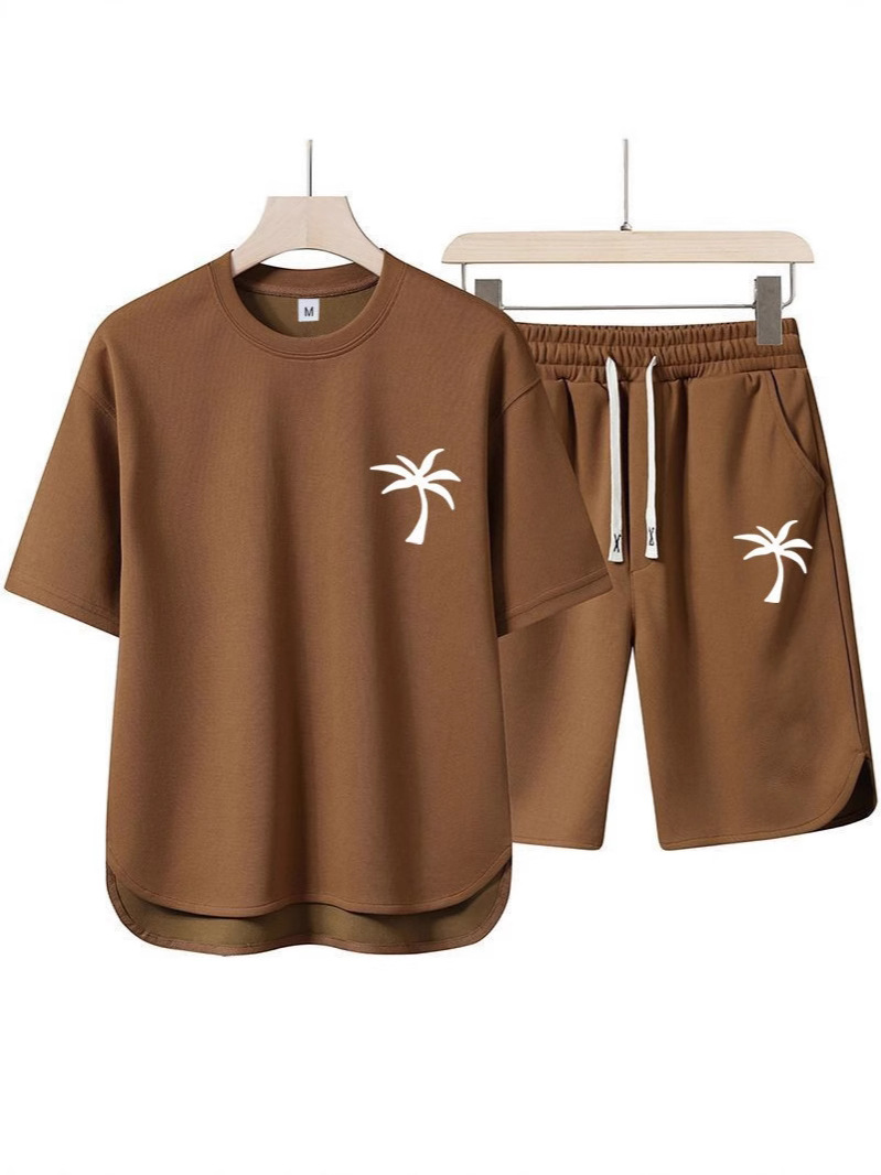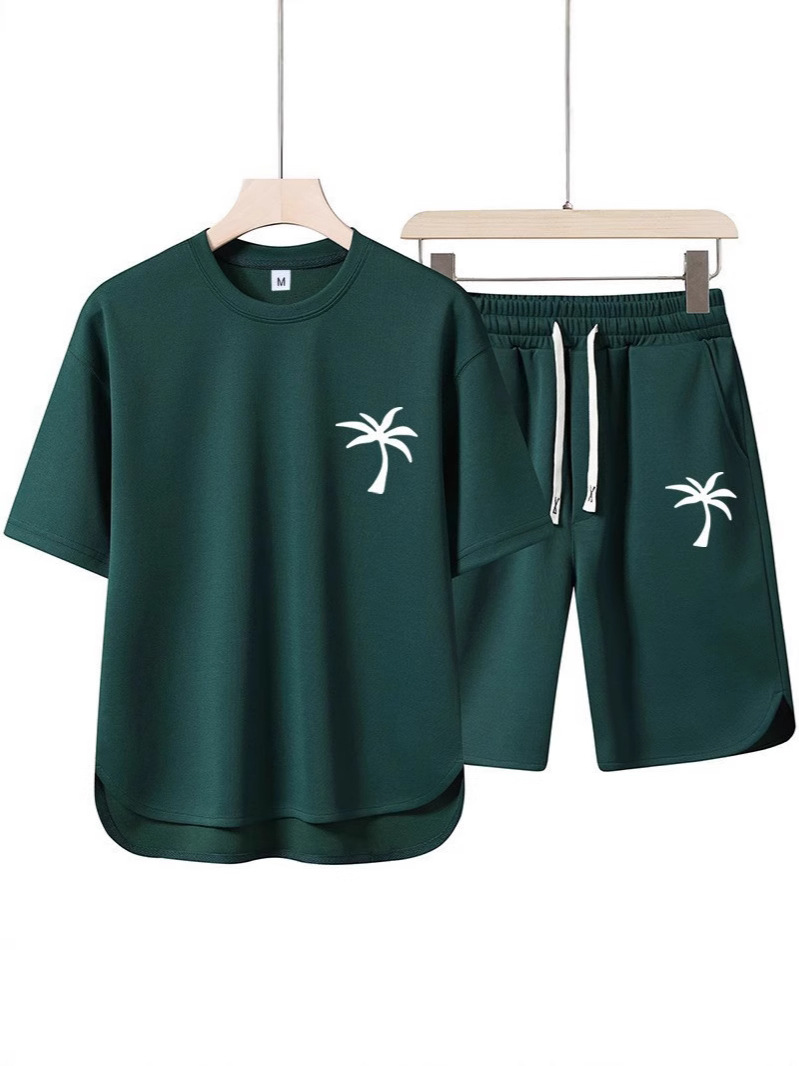 2025 여름 크로스보더 신작 남성 라운드 넥 티셔츠 3D 프린트 코코넛 비치 트리 풀오버 반팔 멀티 컬러 옵션