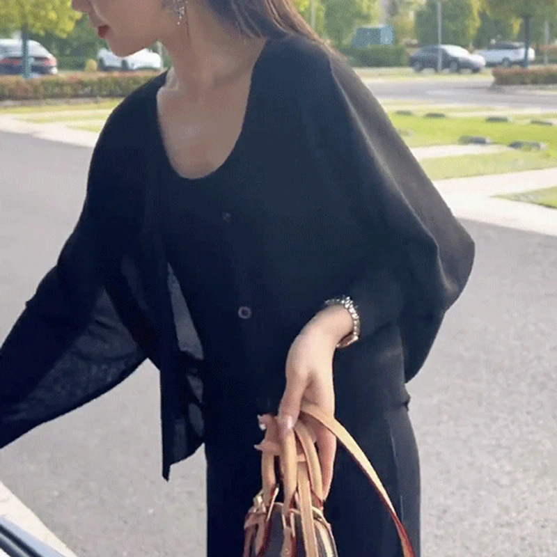 브랜드 할인 여성 의류 카운터 정품 아이스 실크 카디건 여성 루즈 플러스 사이즈 여름 숄 탑 자외선 차단 의류