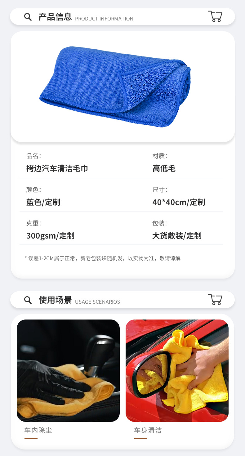 극세사 자동차 닦는 수건, 고급 및 저급 두꺼운 작은 사각형 수건, 보푸라기가 없는 청소용 걸레, 도매 국경 간 세차 수건