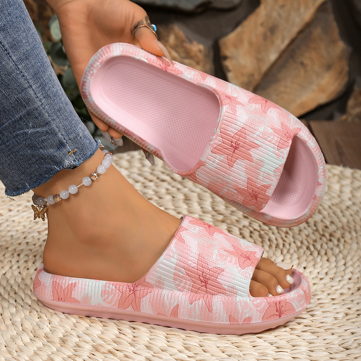 집과 외출 모두를 위한 여름 두꺼운 밑창 꽃무늬 샌들, 남녀 동일 스타일 커플 EVA 슬리퍼