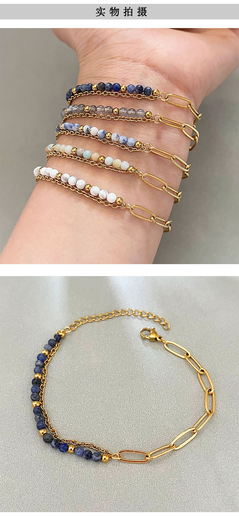 유럽과 미국의 국경 간 2025 새로운 천연석 페르시 더블 레이어 팔찌 복고풍 하이 엔드 다목적 스테인레스 스틸 팔찌 여성을위한