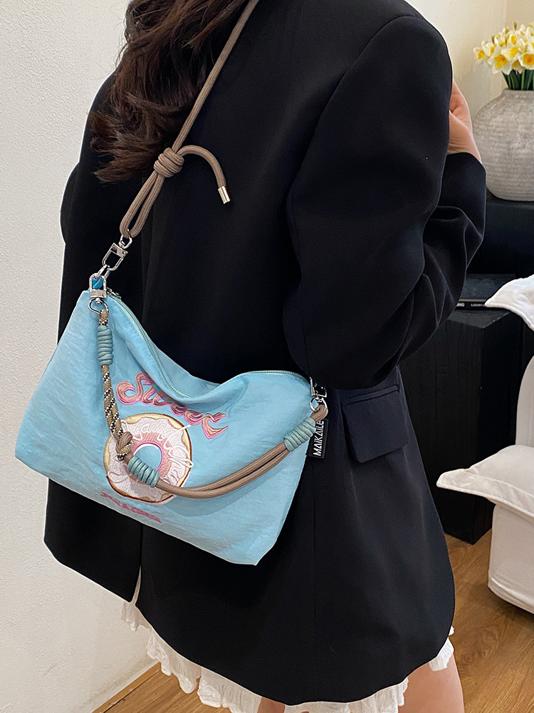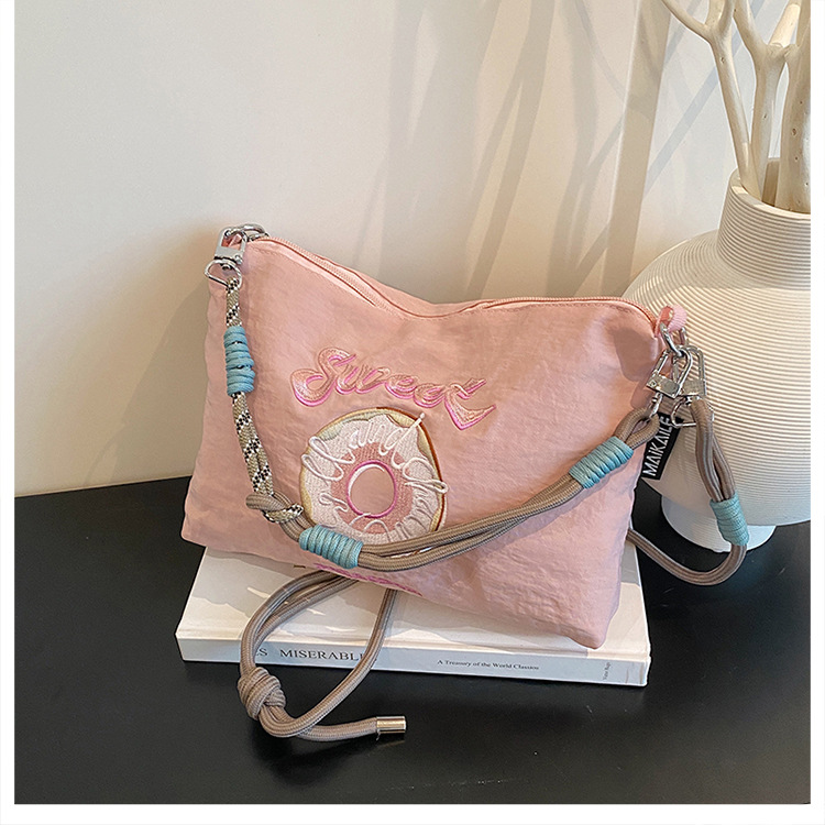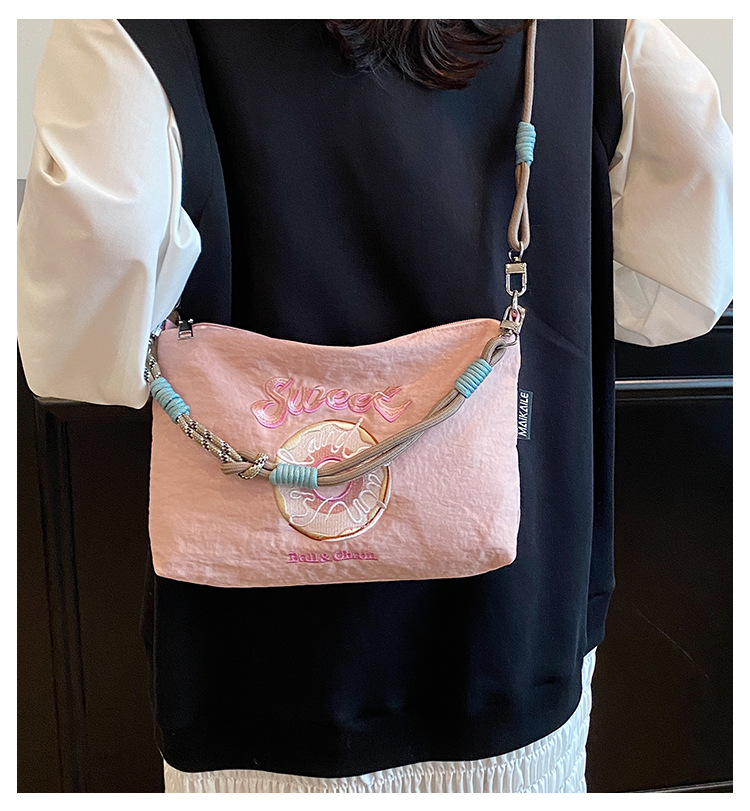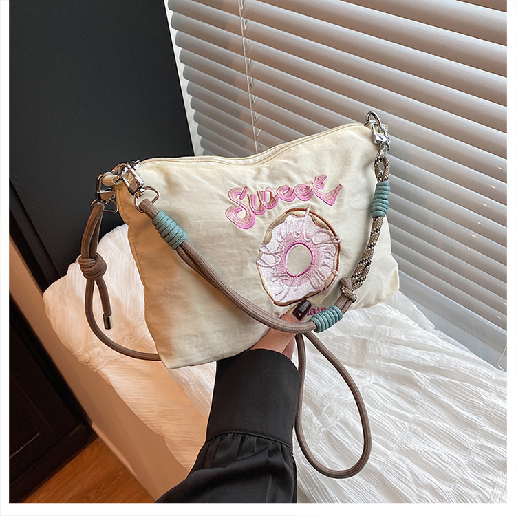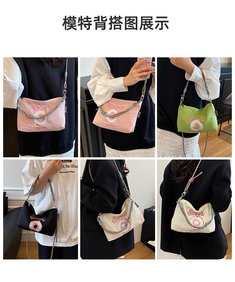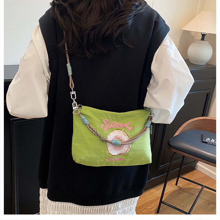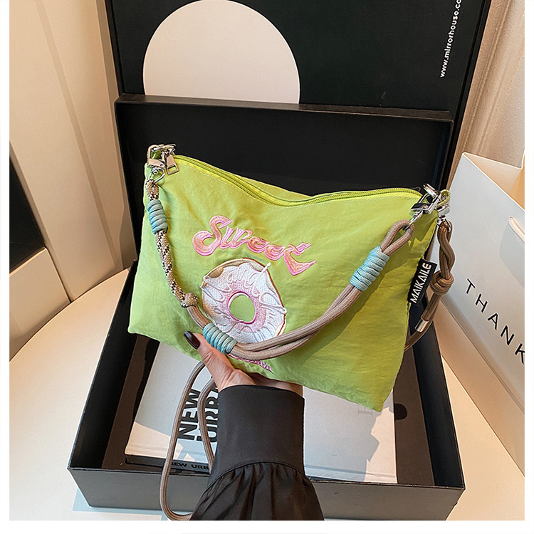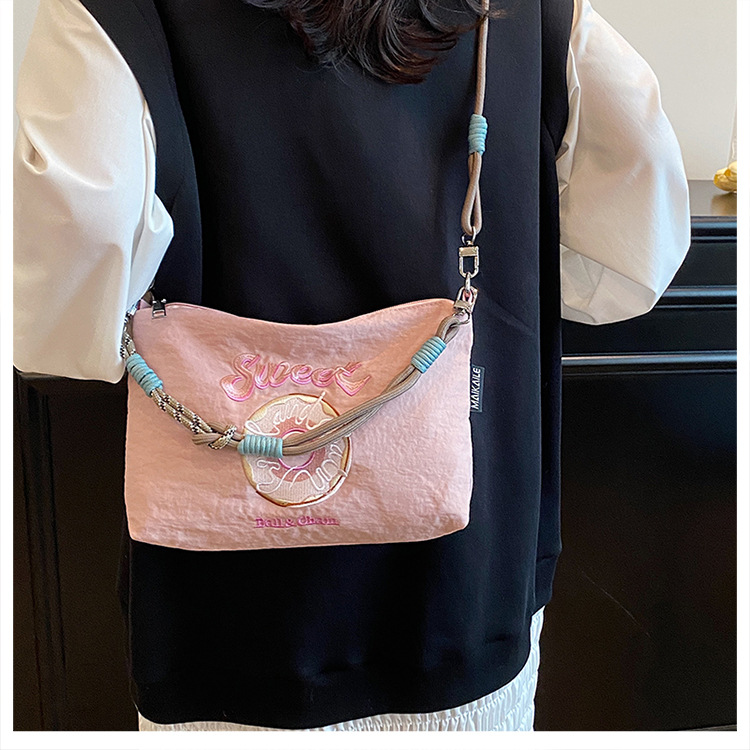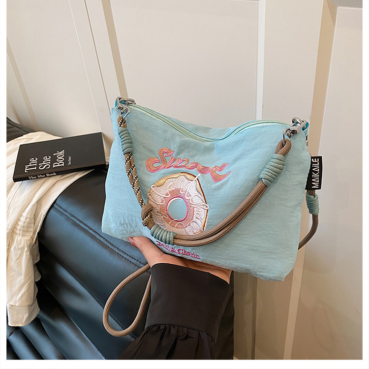 2025 새로운 자수 나일론 자수 쇼핑백 미니 친환경 가방 어깨 크로스 바디 백 휴대용 소형 가방 휴대 전화 가방