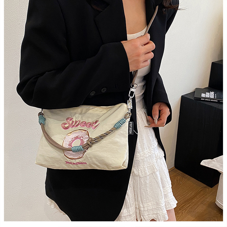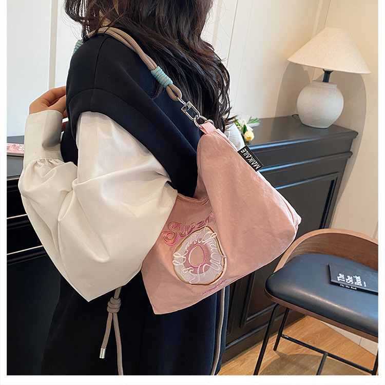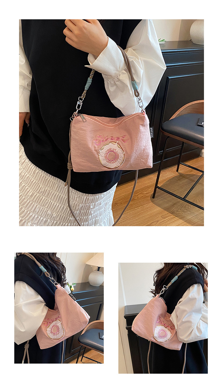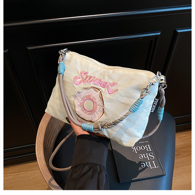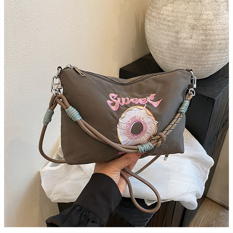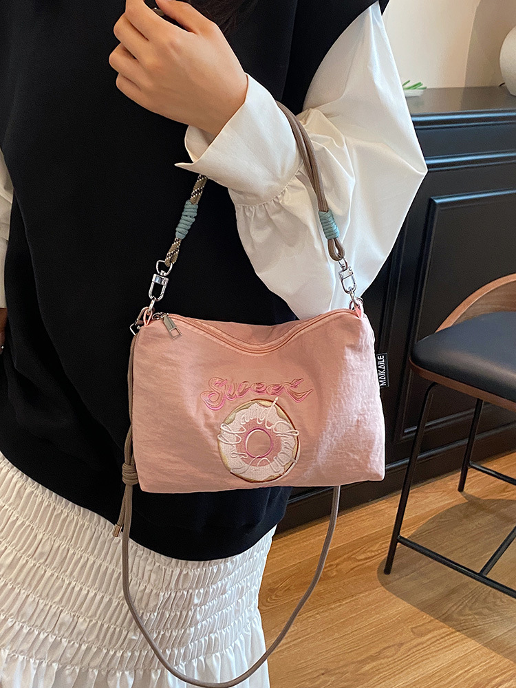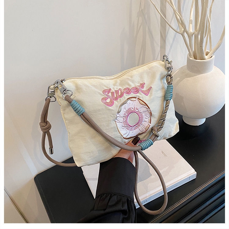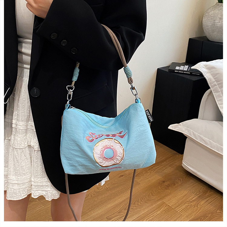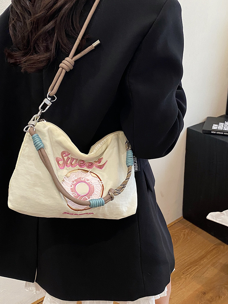 2025 새로운 자수 나일론 자수 쇼핑백 미니 친환경 가방 어깨 크로스 바디 백 휴대용 소형 가방 휴대 전화 가방