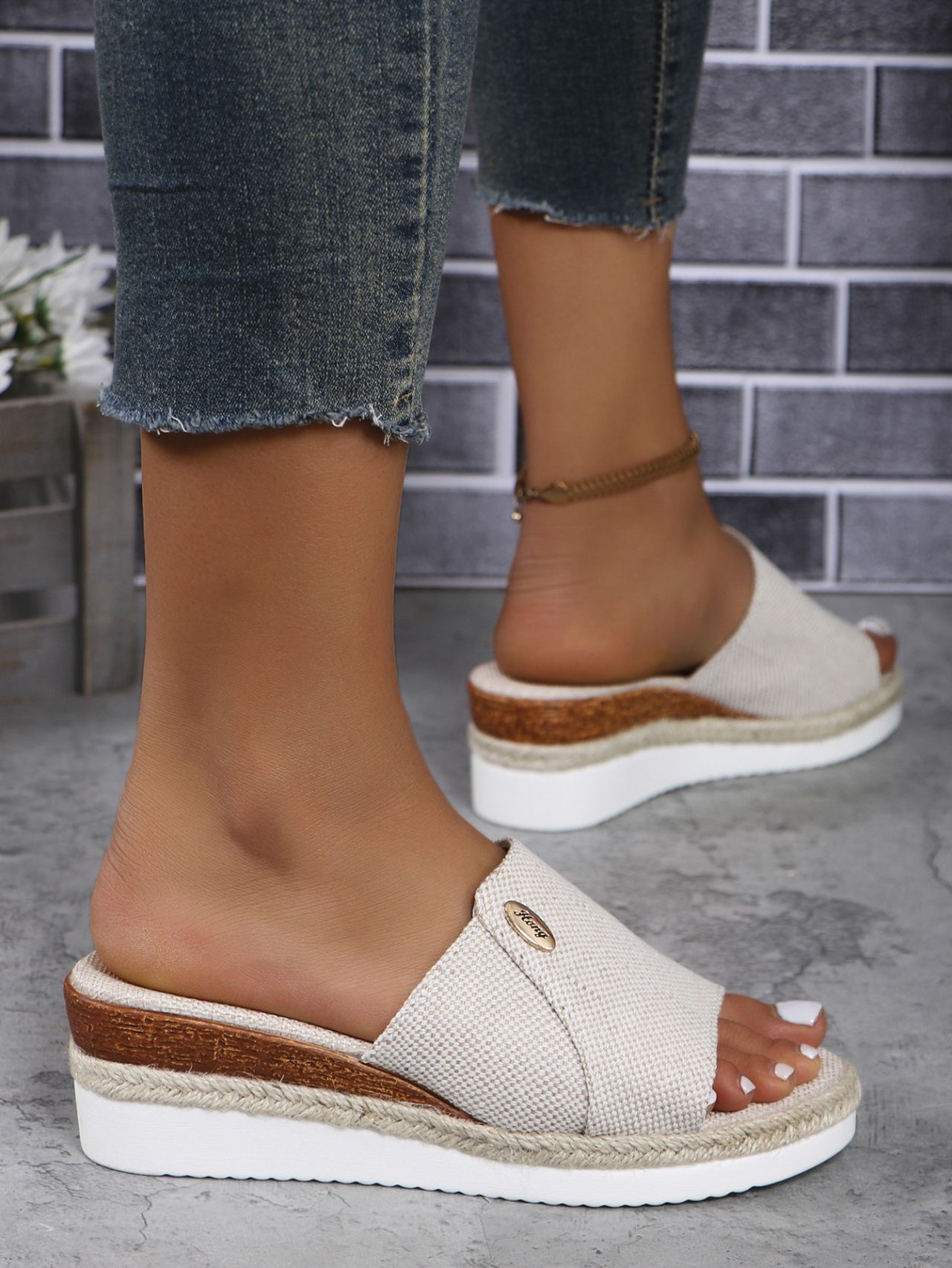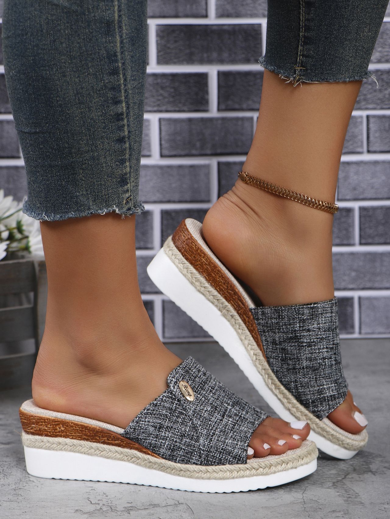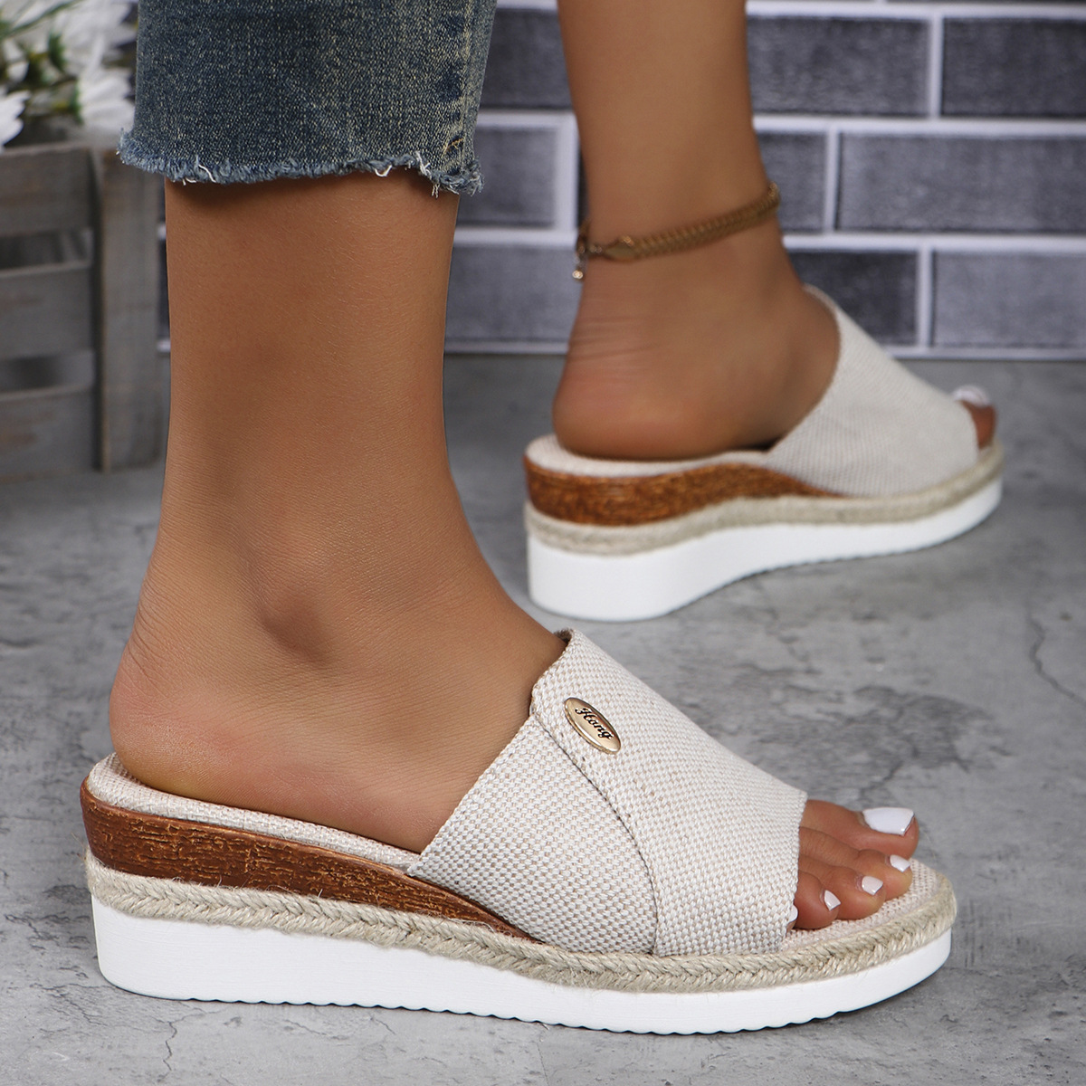 여성을위한 국경 간 대외 무역 웨지 슬리퍼 2024 새로운 유럽과 미국의 두꺼운 밑창 중간 굽 캐주얼 비치 피쉬 입 샌들 대형