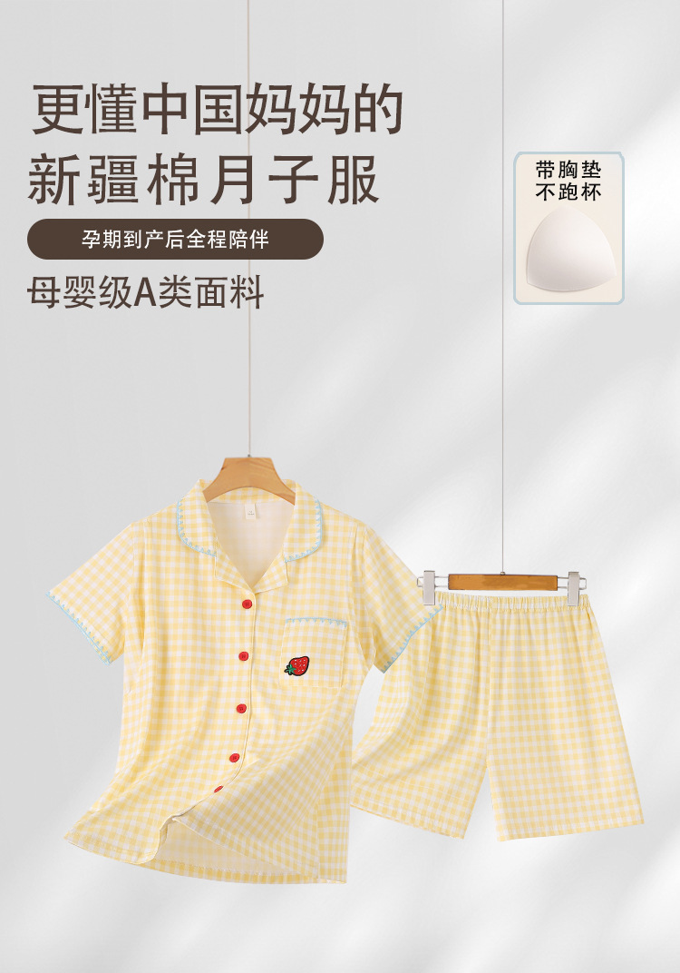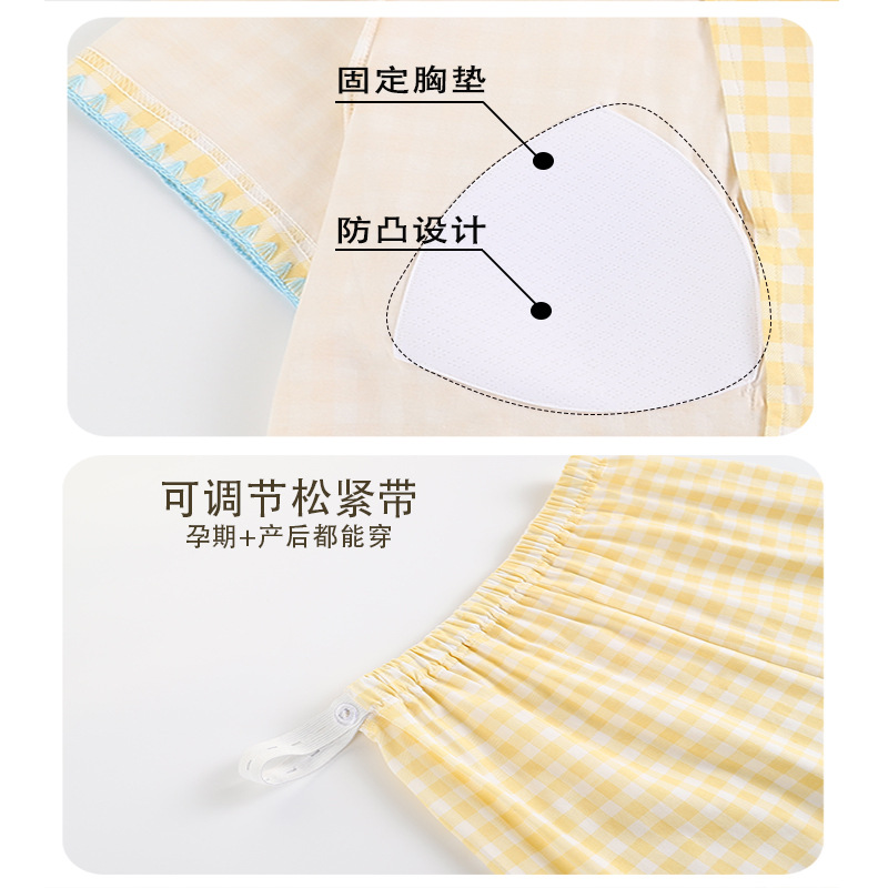클래스 A 산후 의류 순면 여름 얇은 임산부 잠옷 유방 패드 포함 수유 의류 반팔 가정 의류 세트 수유 a
