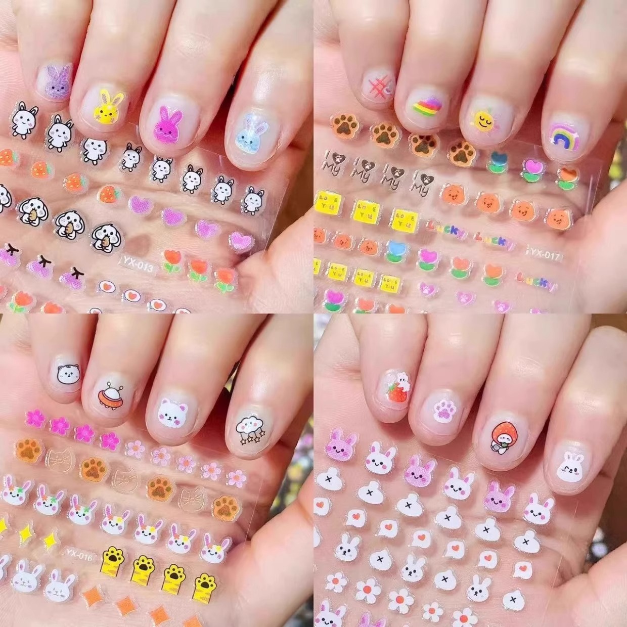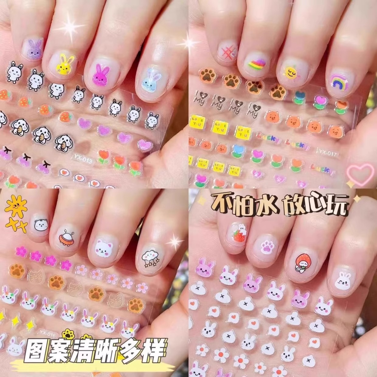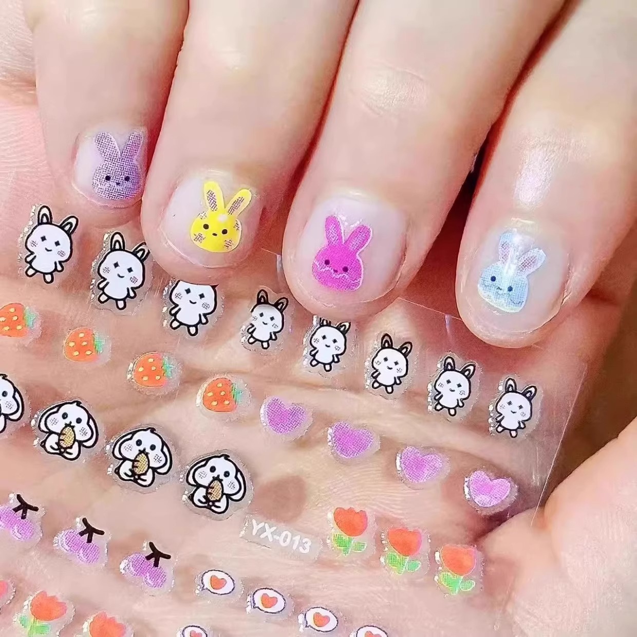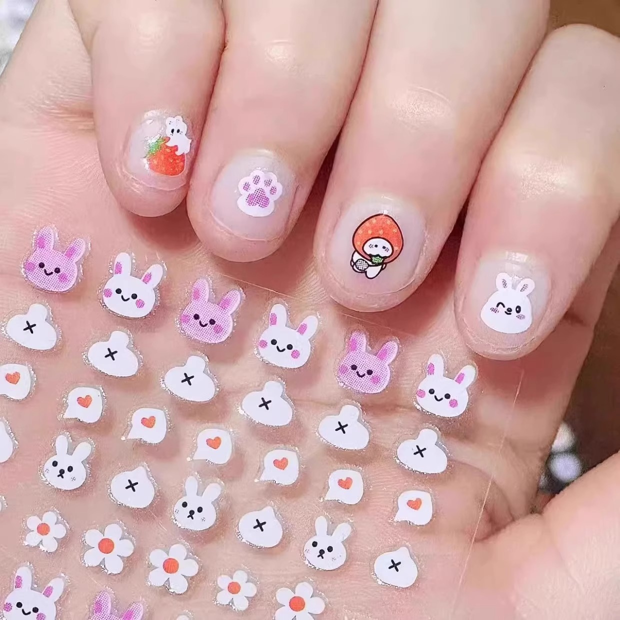 어린이 귀여운 만화 토끼 네일 스티커 공주 아기 방수 네일 아트 데칼 어린이 장난감 토끼 스티커