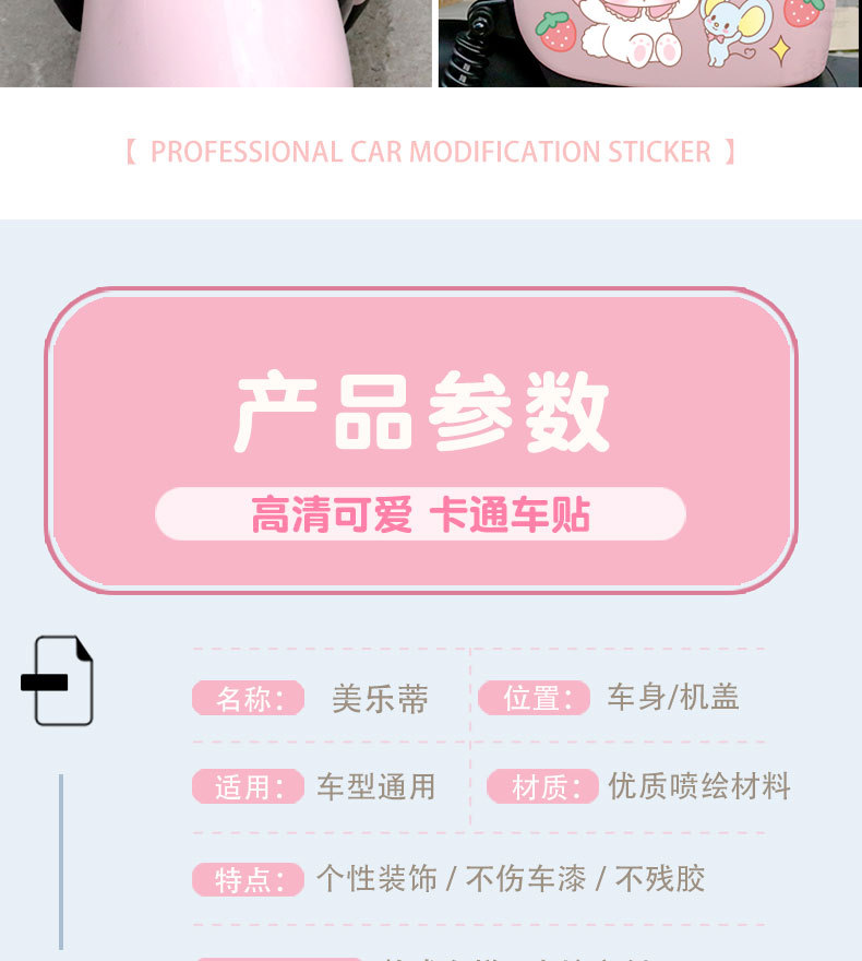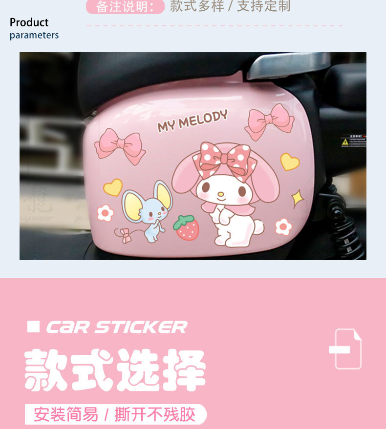 전기차 스티커 쿠로미 멜로디 귀여운 만화 장식 스크래치 커버 스티커