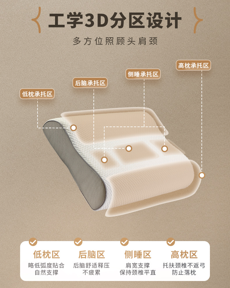 3D 베개, 경추 보호 아치형 메모리폼 베개, 측면 수면용 편안한 경추 베개, 목 보호 베개, 메모리폼 베개 코어