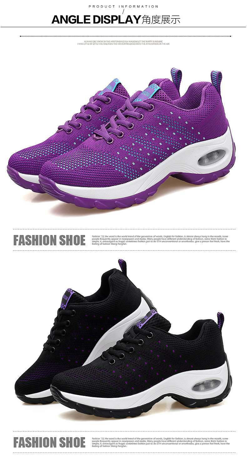 여성을 위한 봄 여름 신상 메쉬 통기성 캐주얼 운동화, 충격 흡수 에어쿠션 운동화, 두꺼운 밑창, 키가 큰 여행용 신발