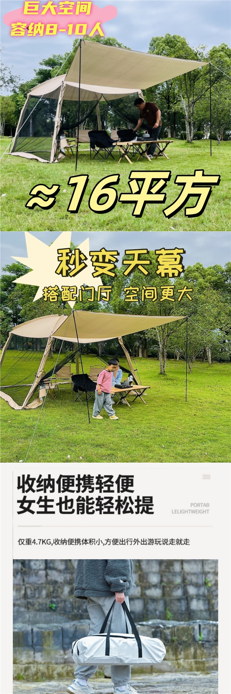 3*3* 2.1m 메쉬 퍼걸러 + 보관 가방 + 그라운드 네일 로프 + 해머
