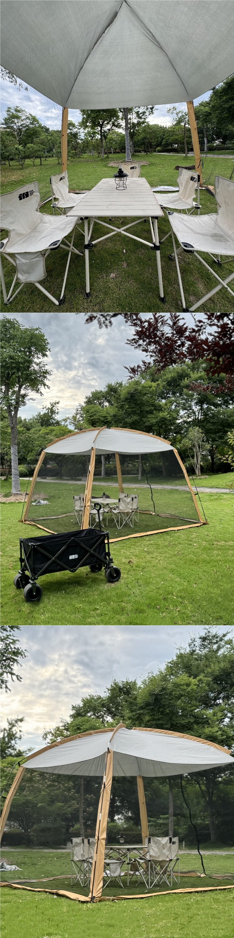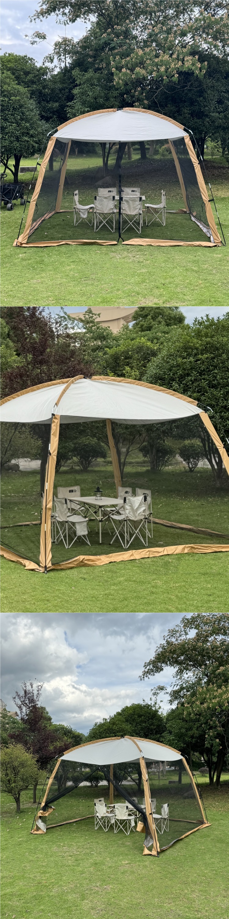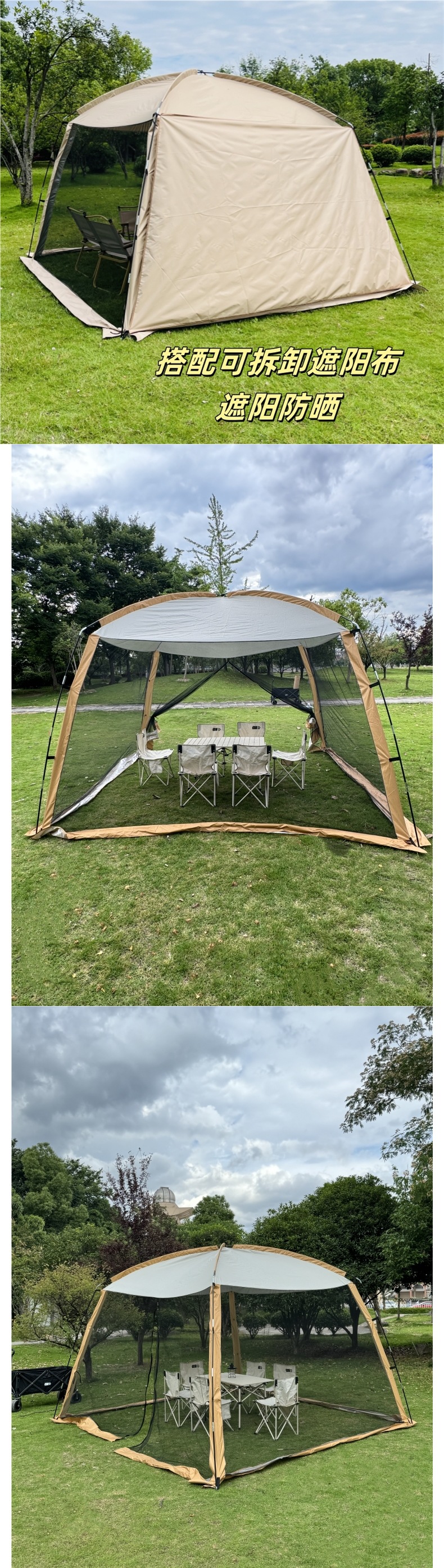 야외 모기장 텐트 캐노피 일체형 차양 비 및 자외선 차단 파빌리온 캠핑 모기 방지 메쉬 쉘터