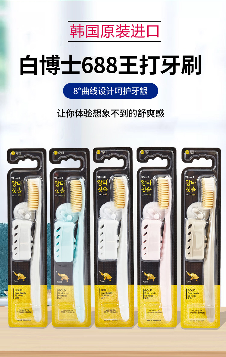 한국 백박사 왕다 688 대형 헤드 소프트모 칫솔 확장형 브러시 헤드 골든 리트리버 칫솔 여행용 편리한 칫솔